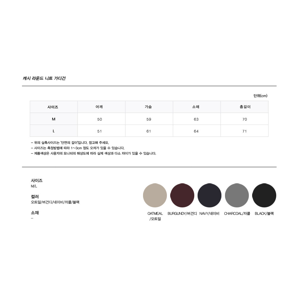 [특가 할인] 캐시 라운드 니트 가디건 (5 Color)