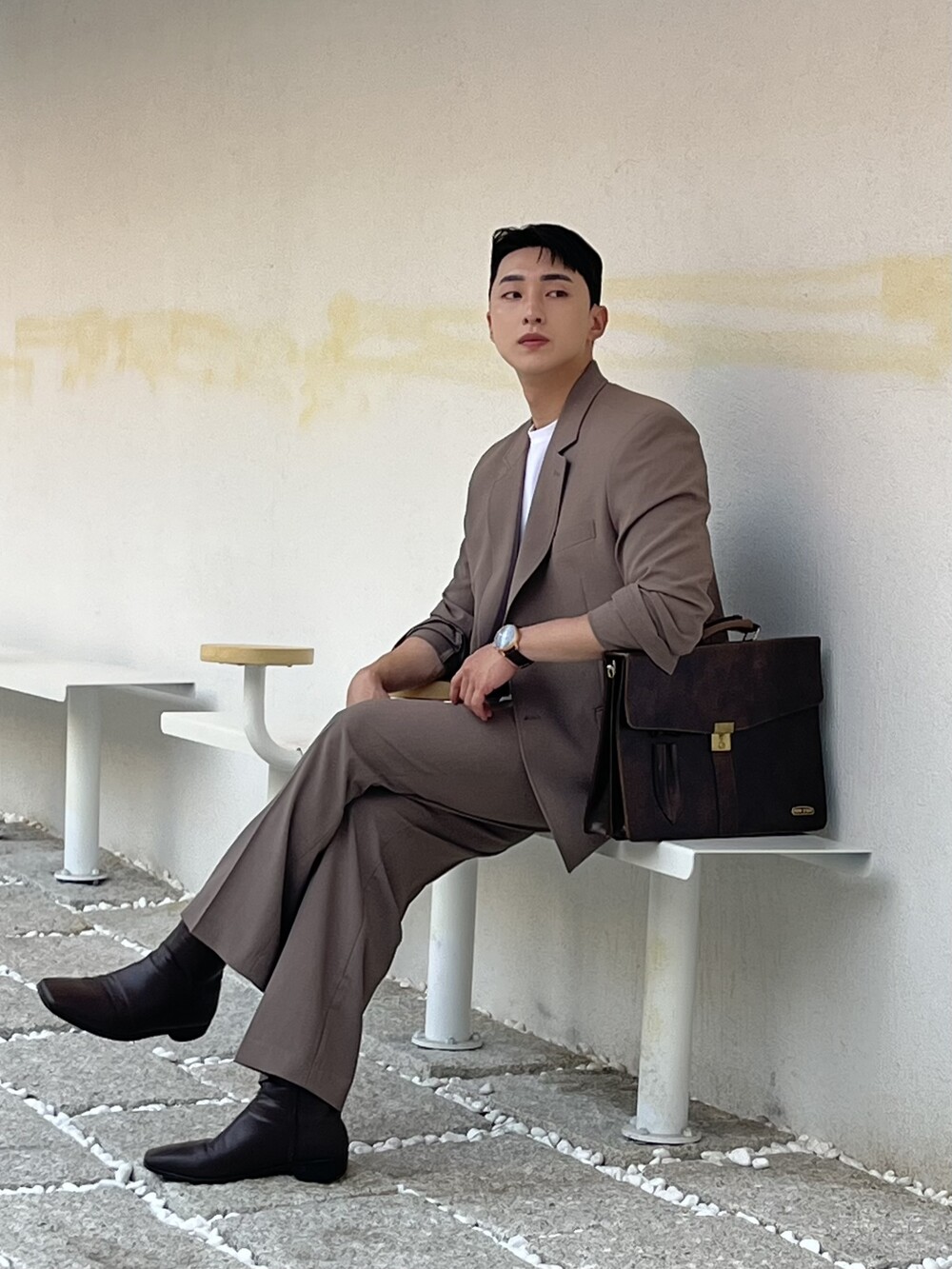 -Charcoal Brown- (일반인 착용 / 177cm 73kg / 상의 L 하의 S )