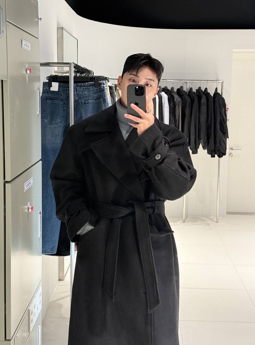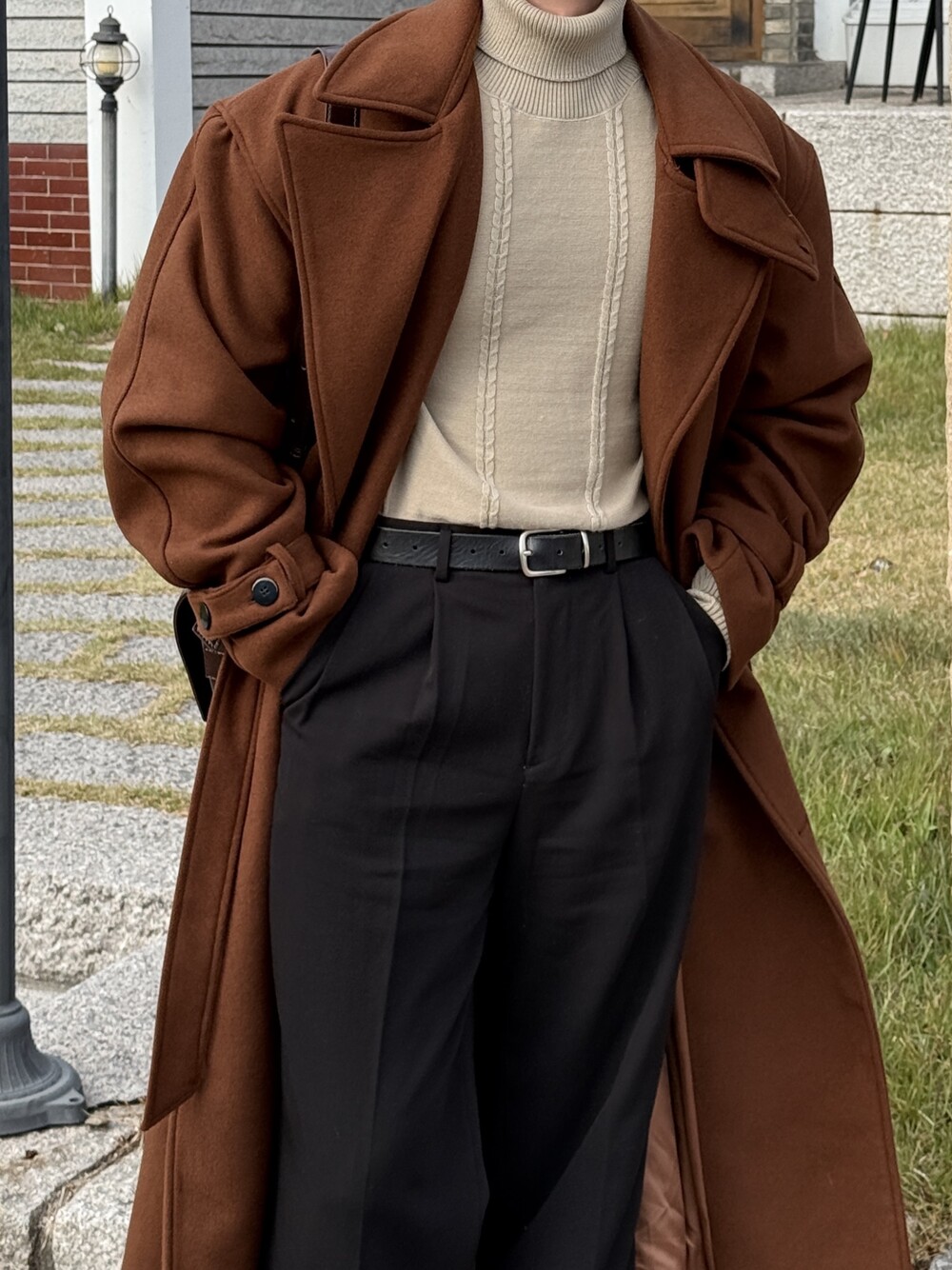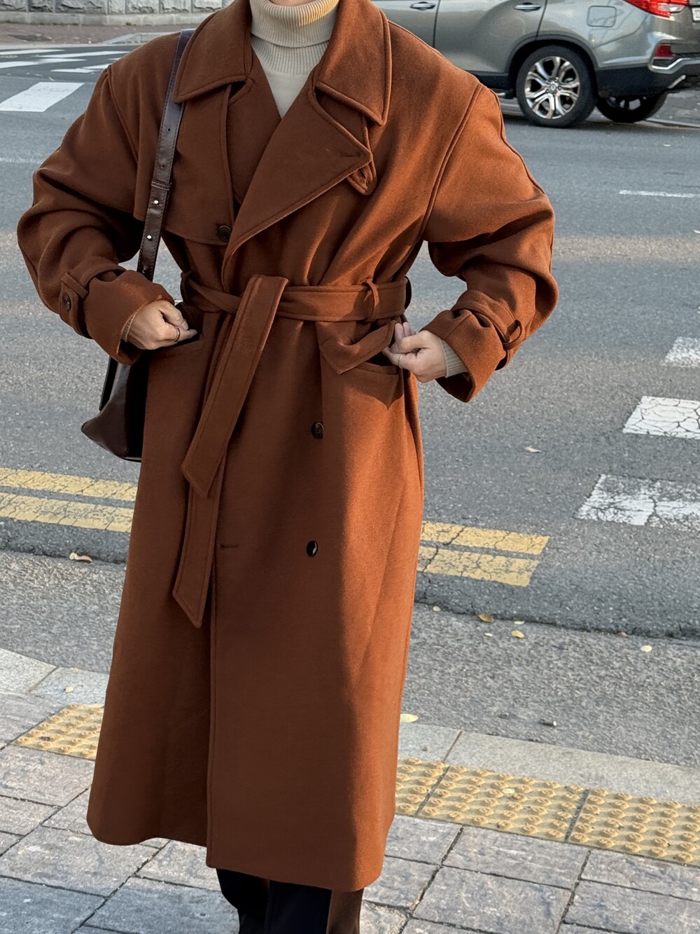 -시중 코트와는 다른 높은 허리 로브라인으로 다리가 길어보이는 효과