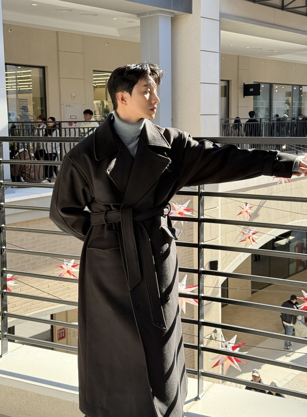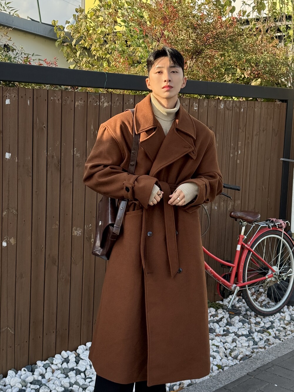 -트렌치 코트 디자인으로 넓은 어깨 핏 강조