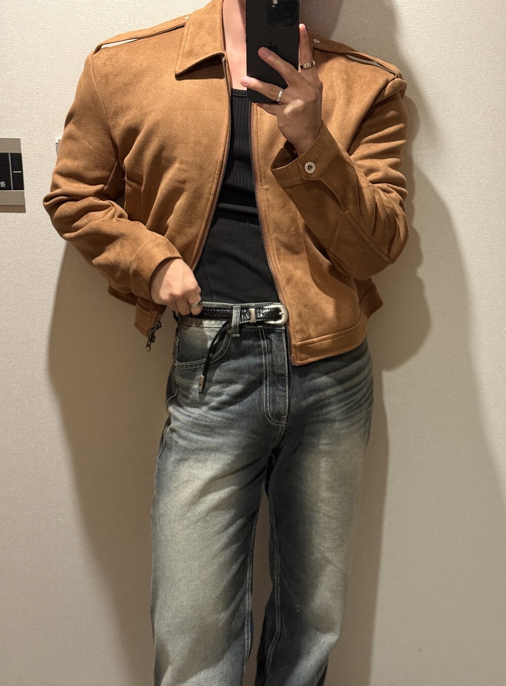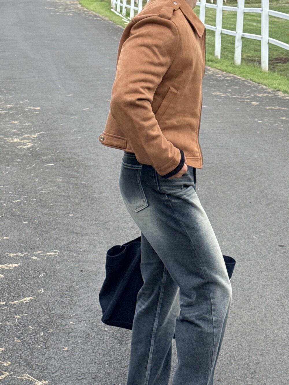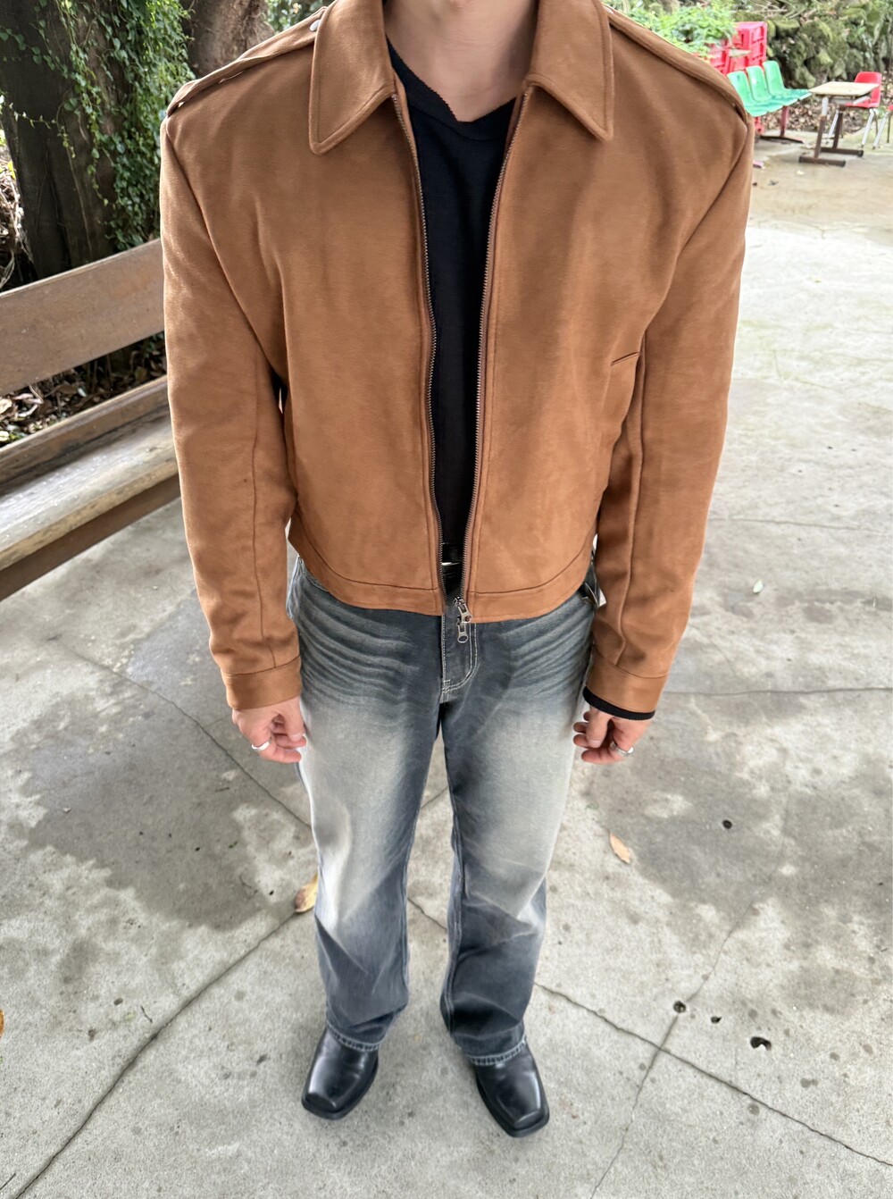 몸에 착 감기는 견장 크롭 스웨이드 자켓