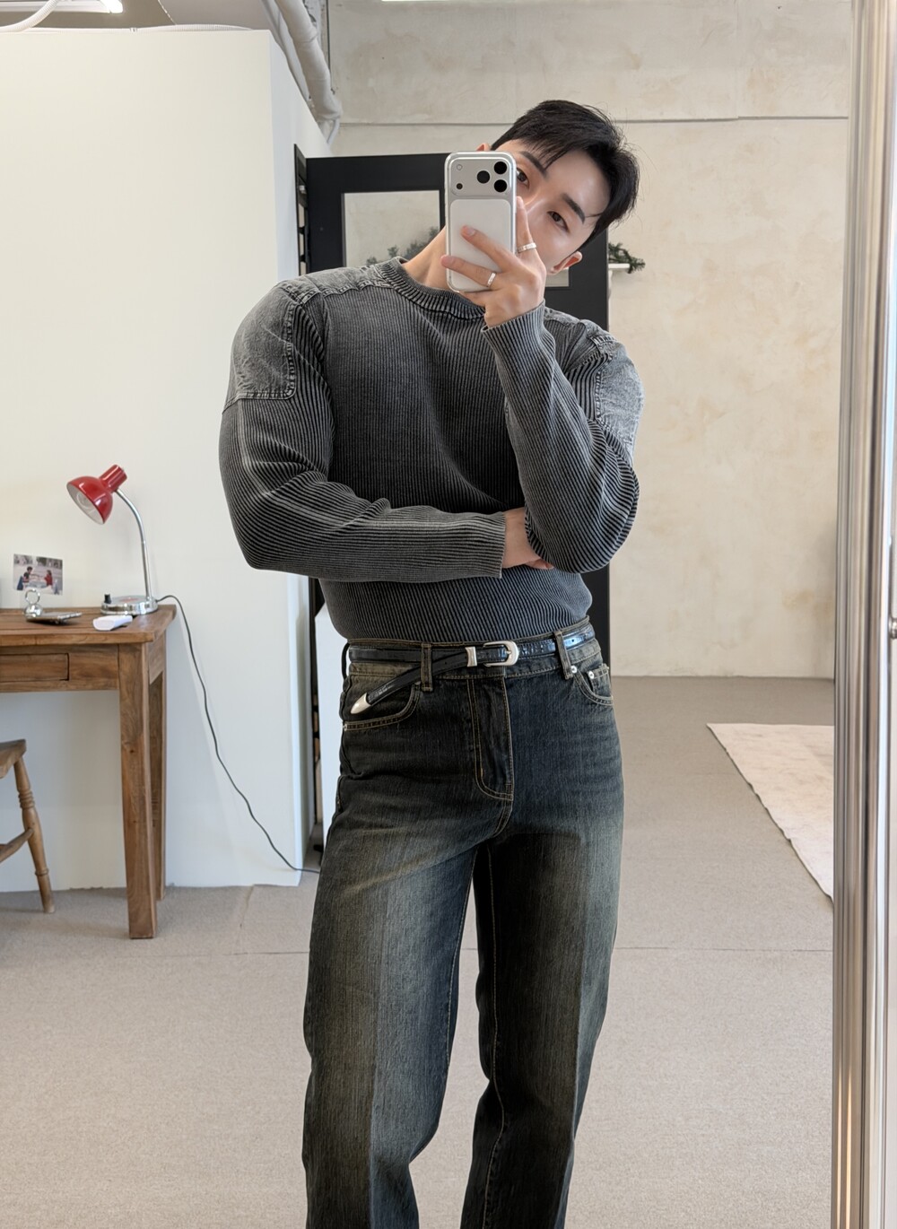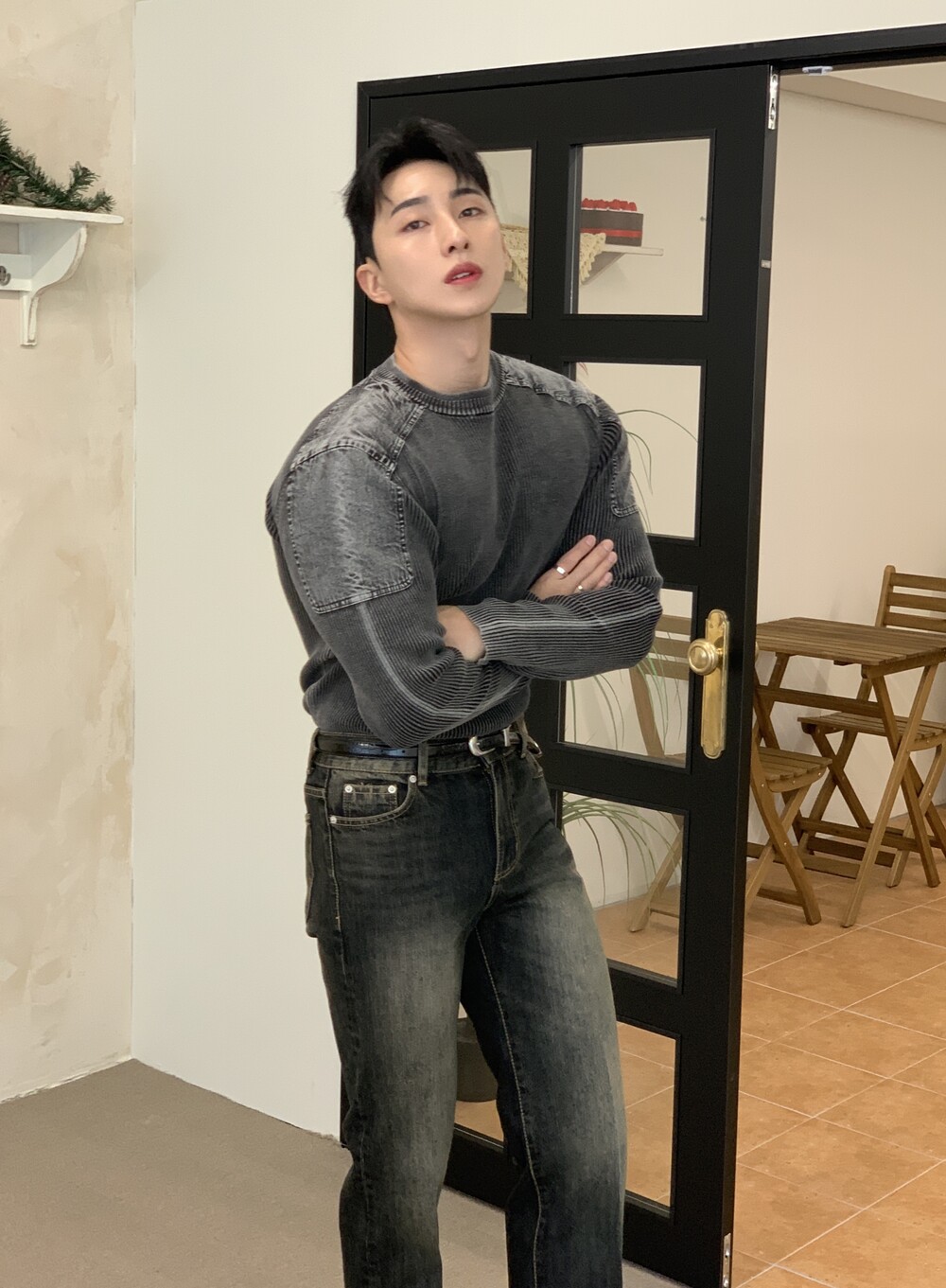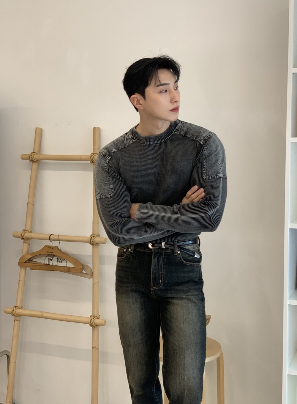 몸이 좋아보이는 워싱 머슬 니트