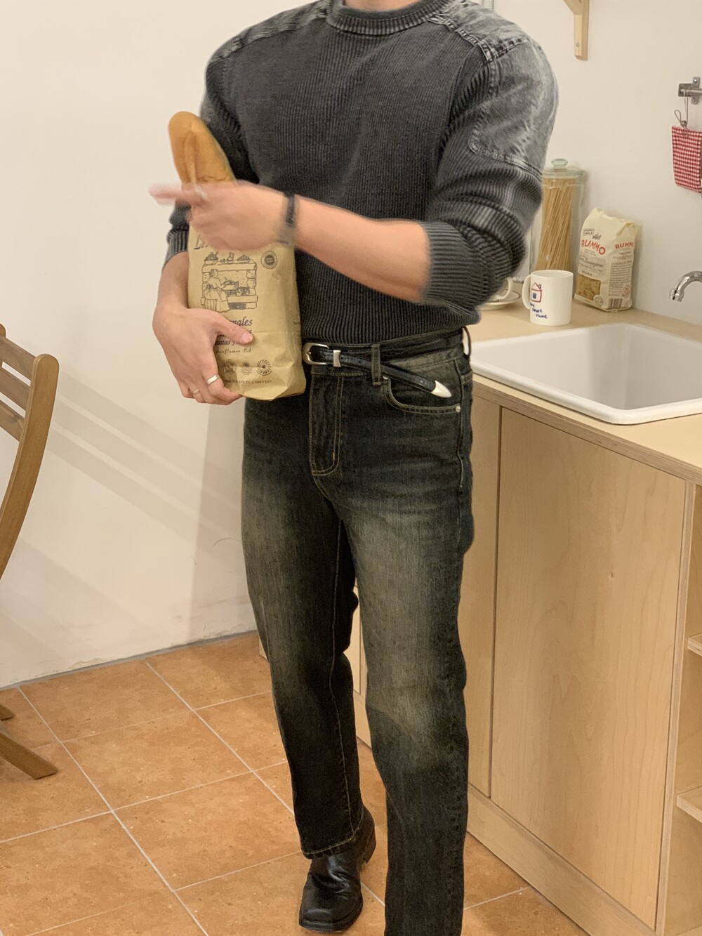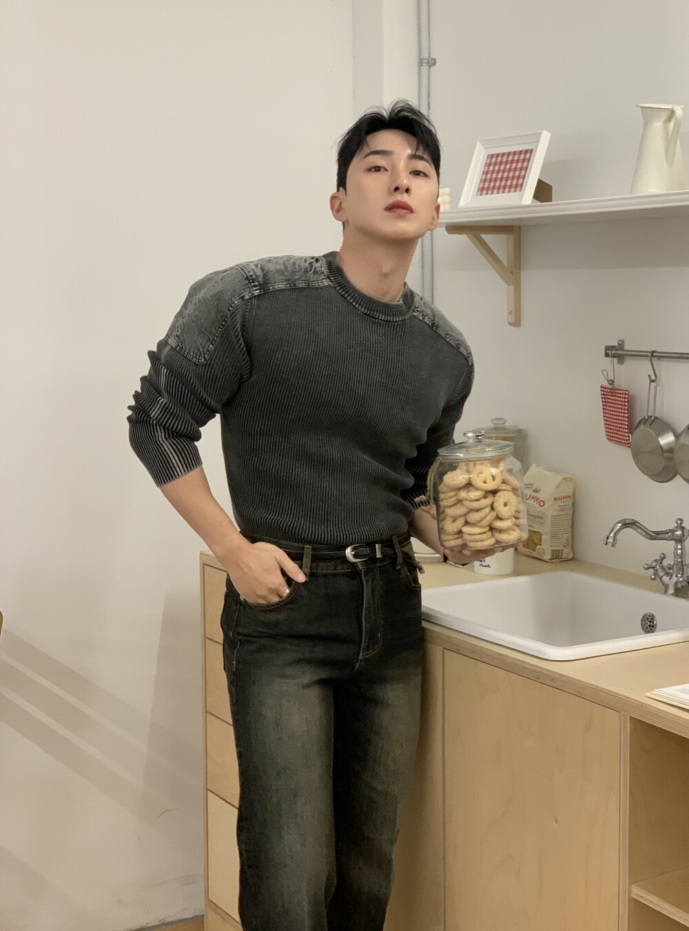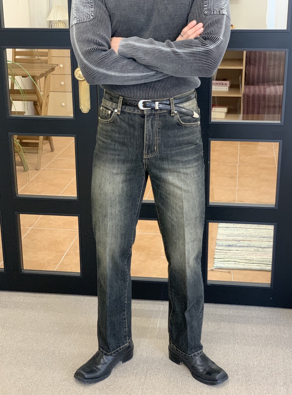 몸이 좋아보이는 워싱 머슬 니트