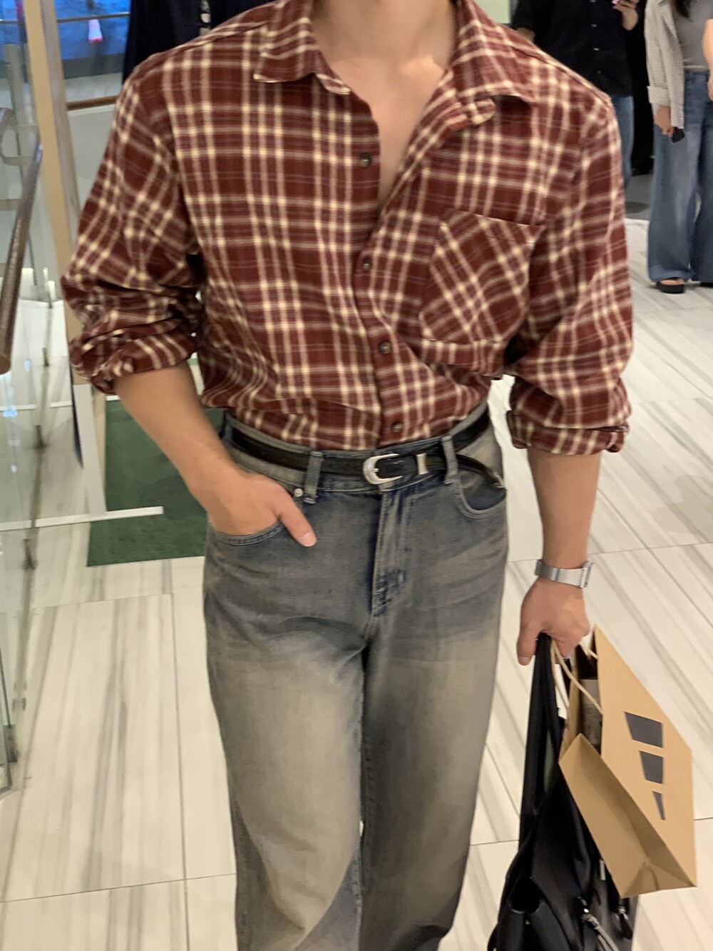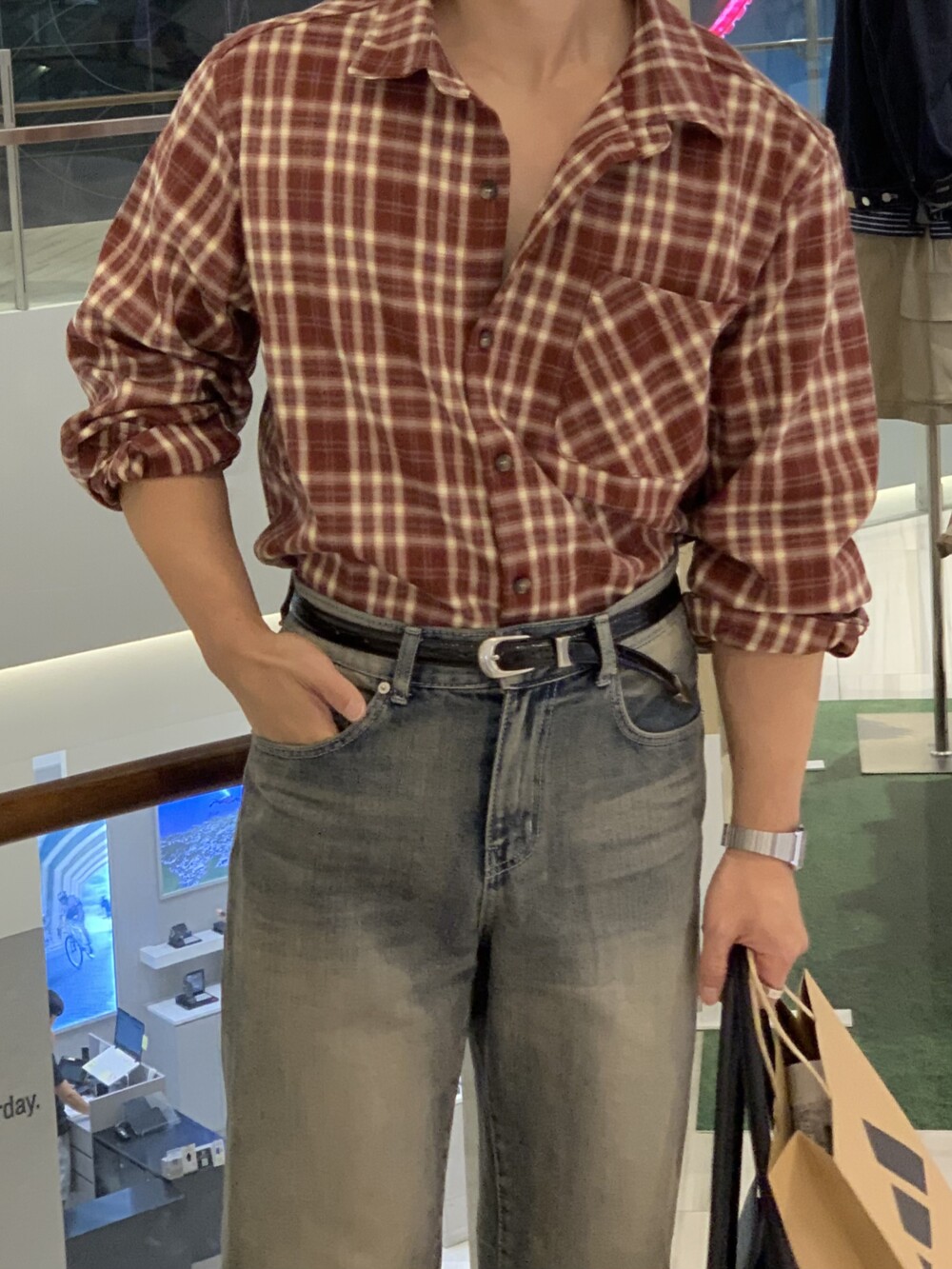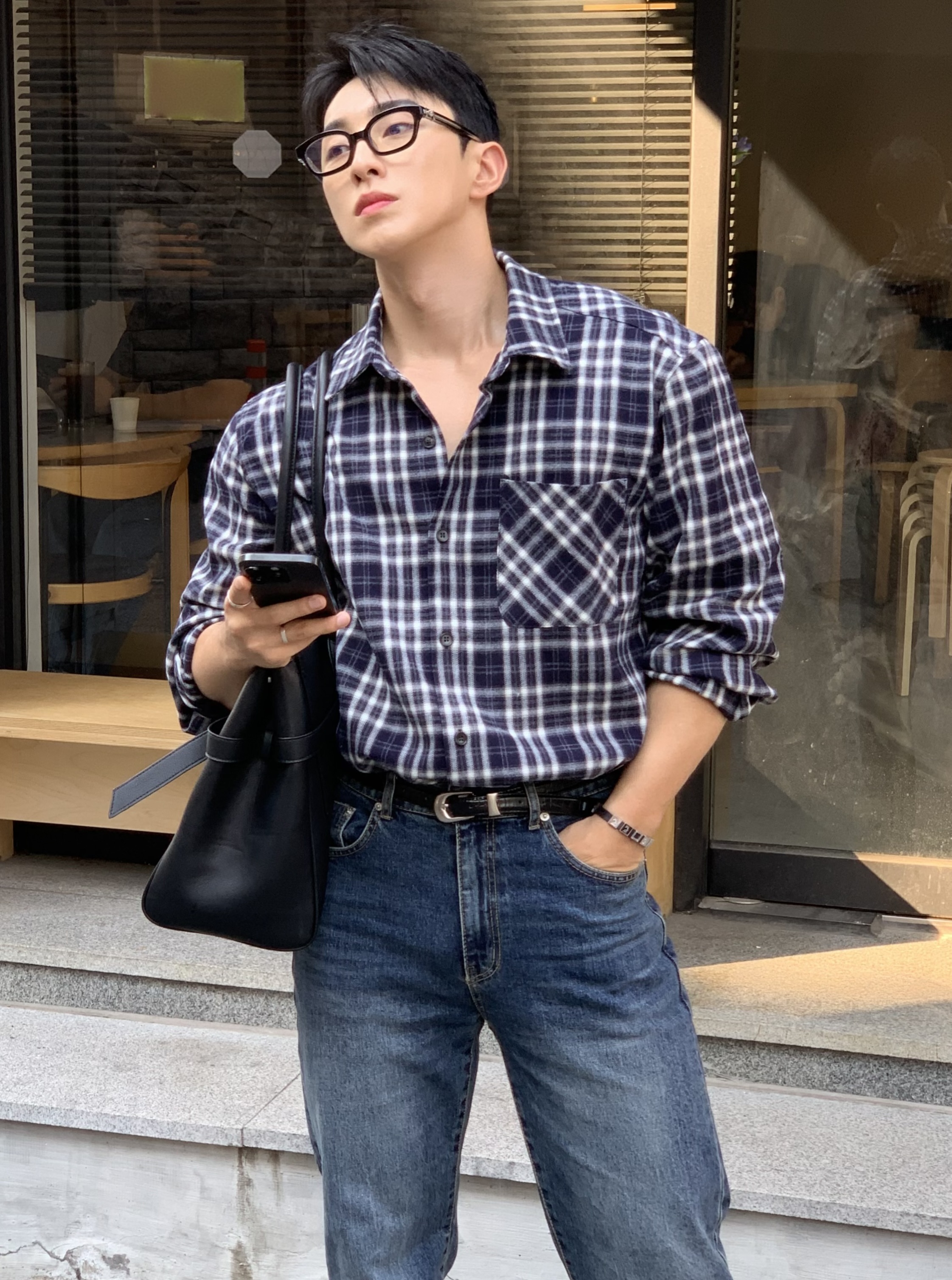리브드 브러쉬 체크 셔츠 (3 Color)
