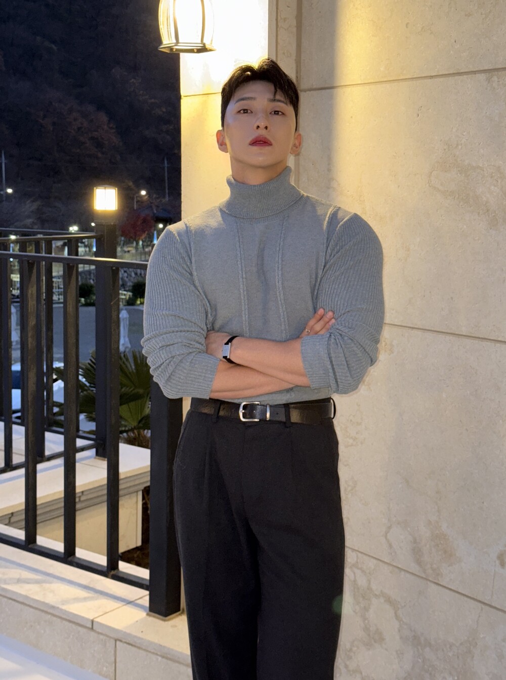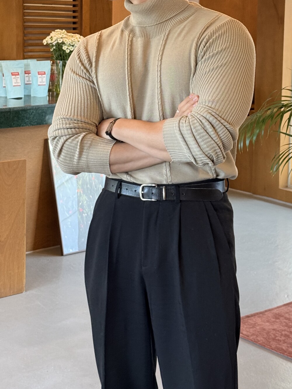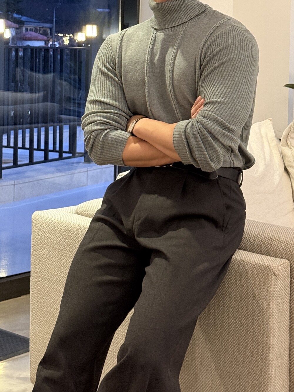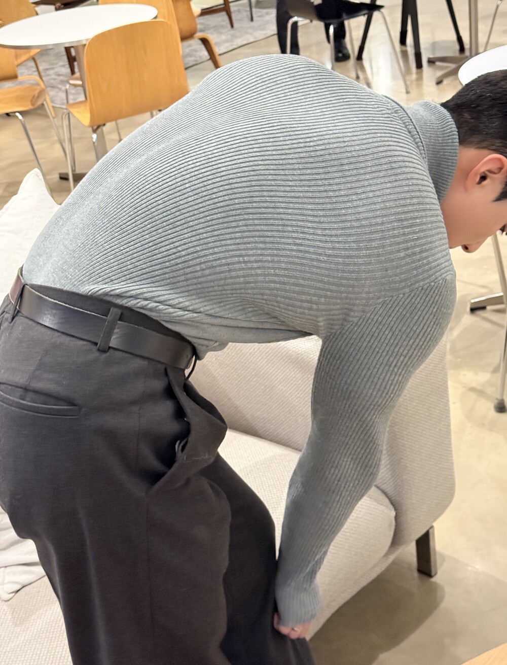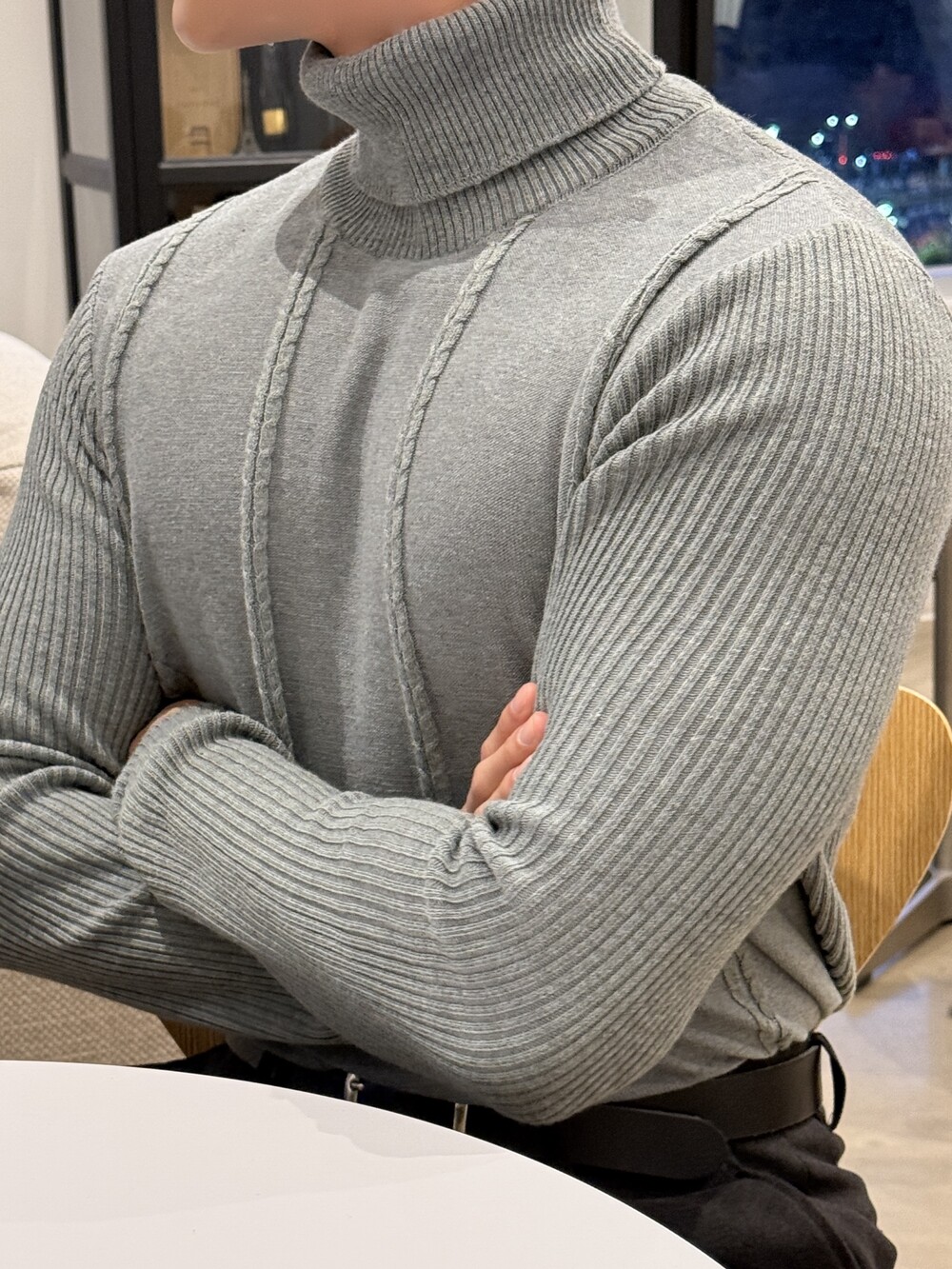-바디 라인을 여유있는 핏함으로 잡아주는 머슬핏 니트