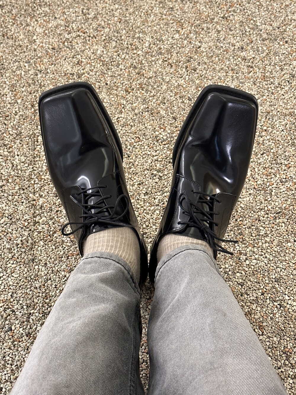 날렵한 쉐입과 포인트가 들어간 스퀘어 토가 매력적인 제품이라 저도 개인 소장하고 있습니다.