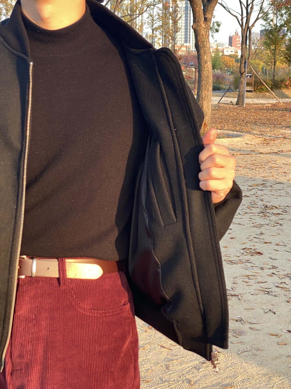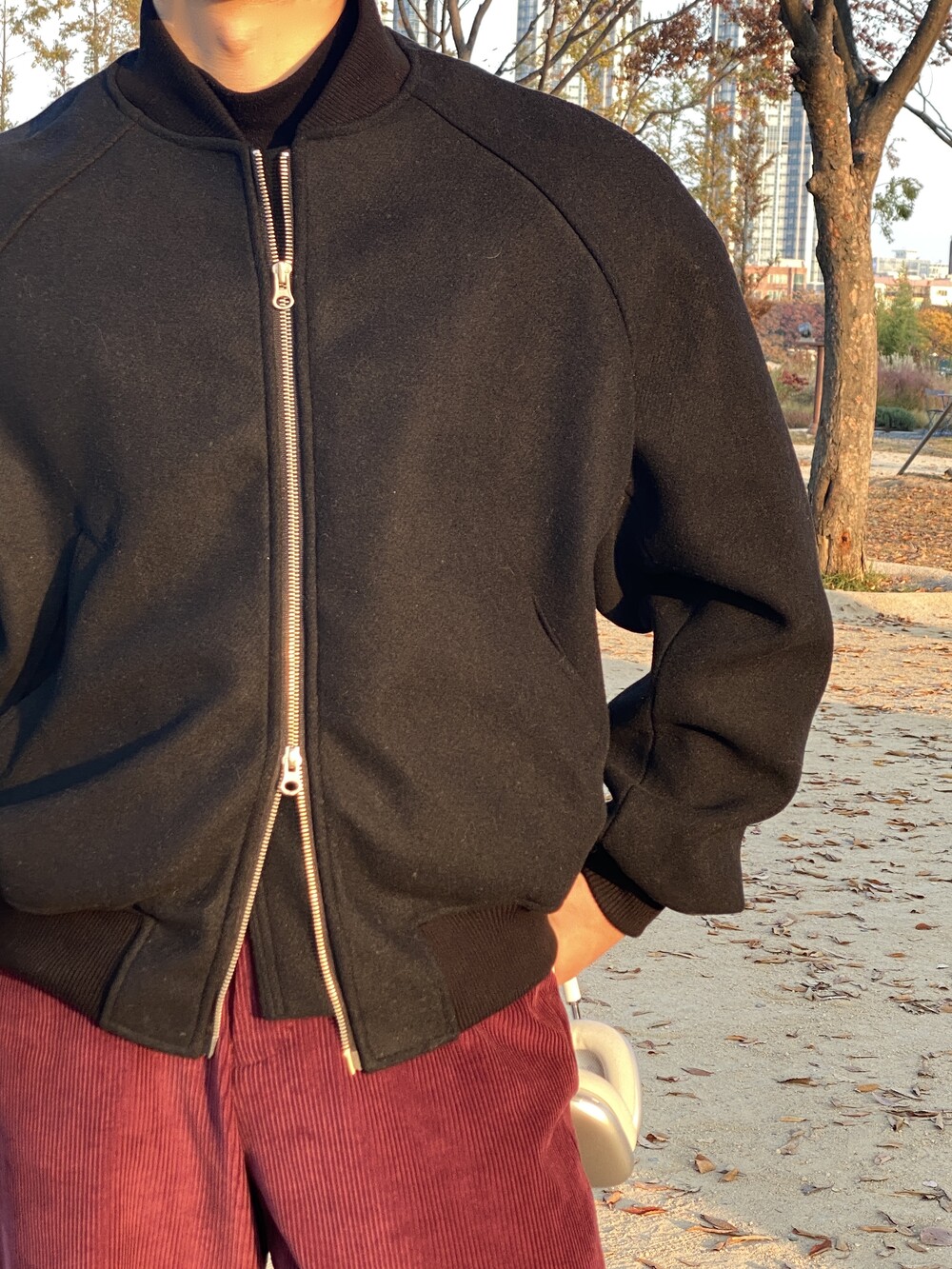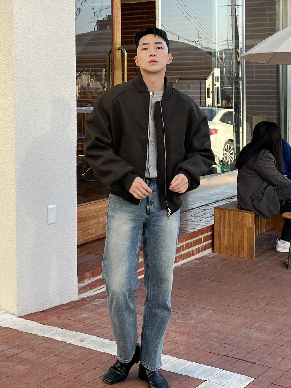 크롭한 기장에 적당한 묵직감으로 추운 겨울에도 착용 가능한 자켓입니다.