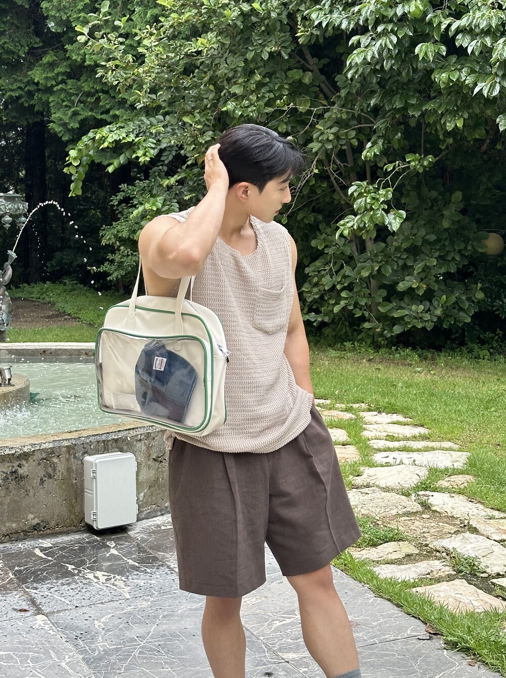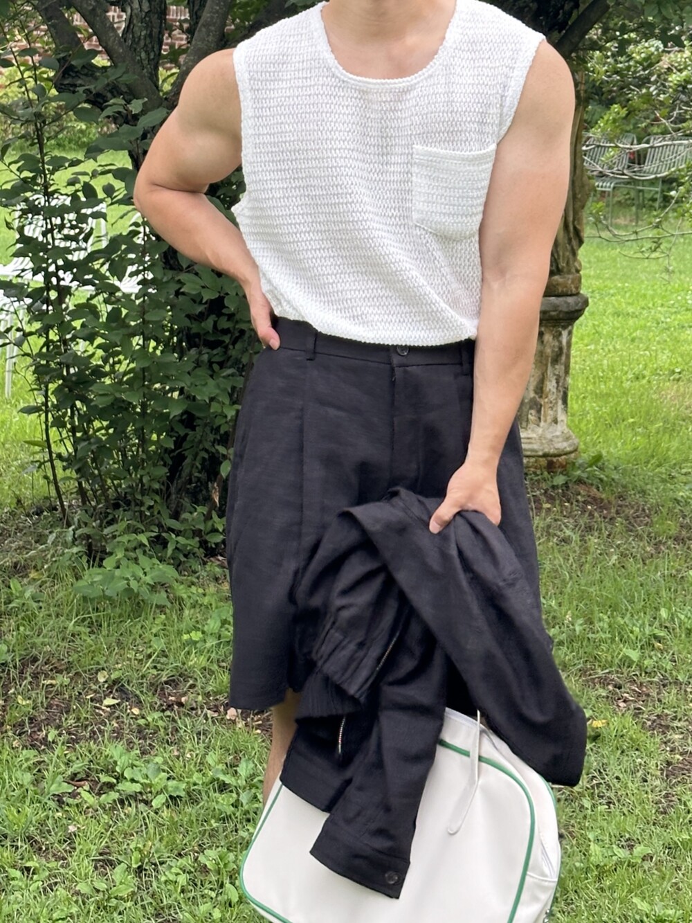 -탄탄하고 텐션 좋은 원단감에 그물망 텍스쳐가 포인트인 제품