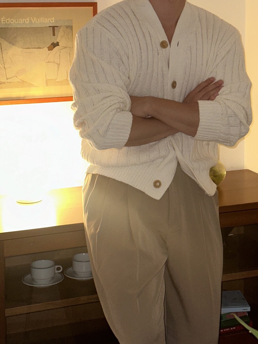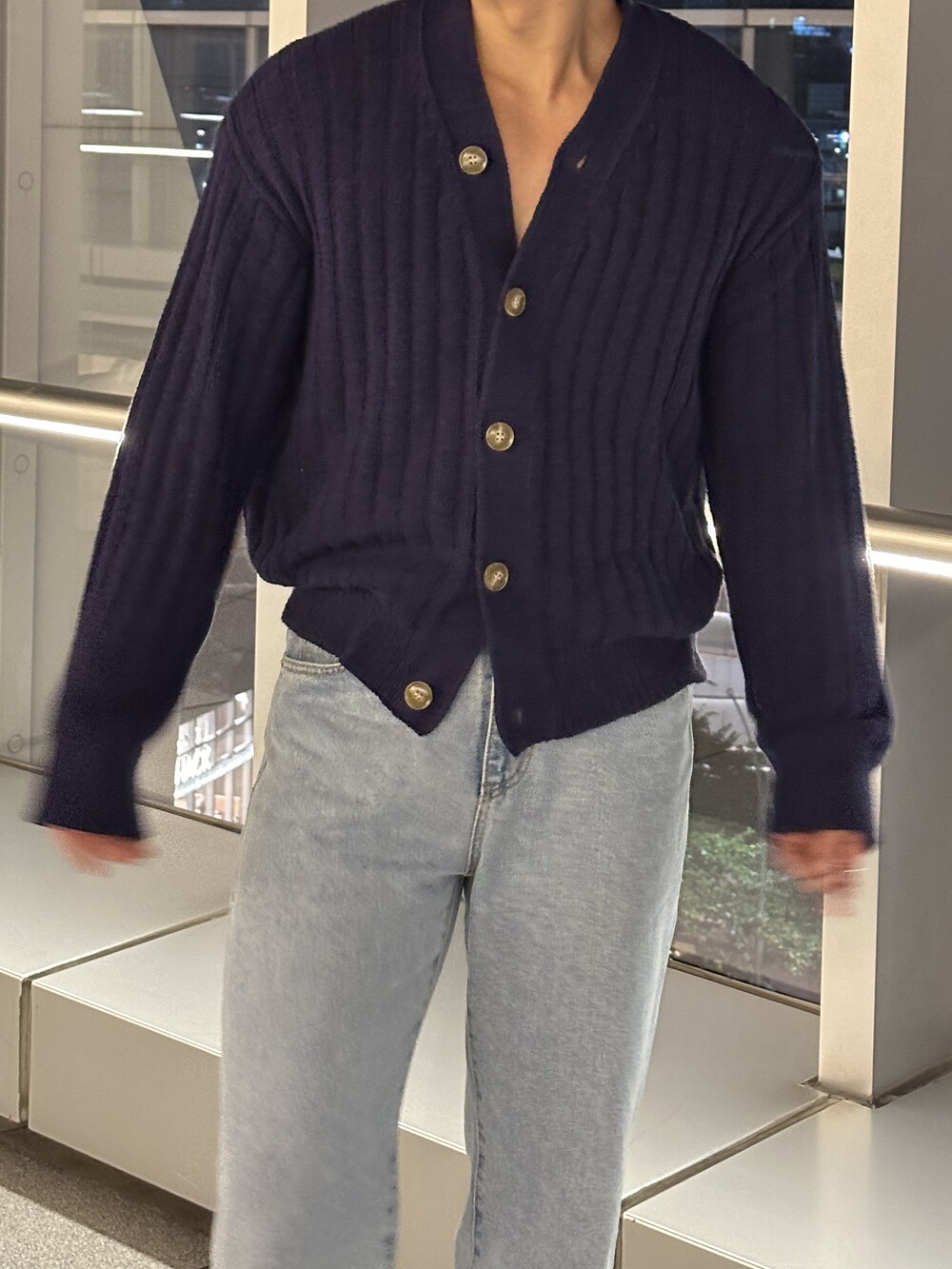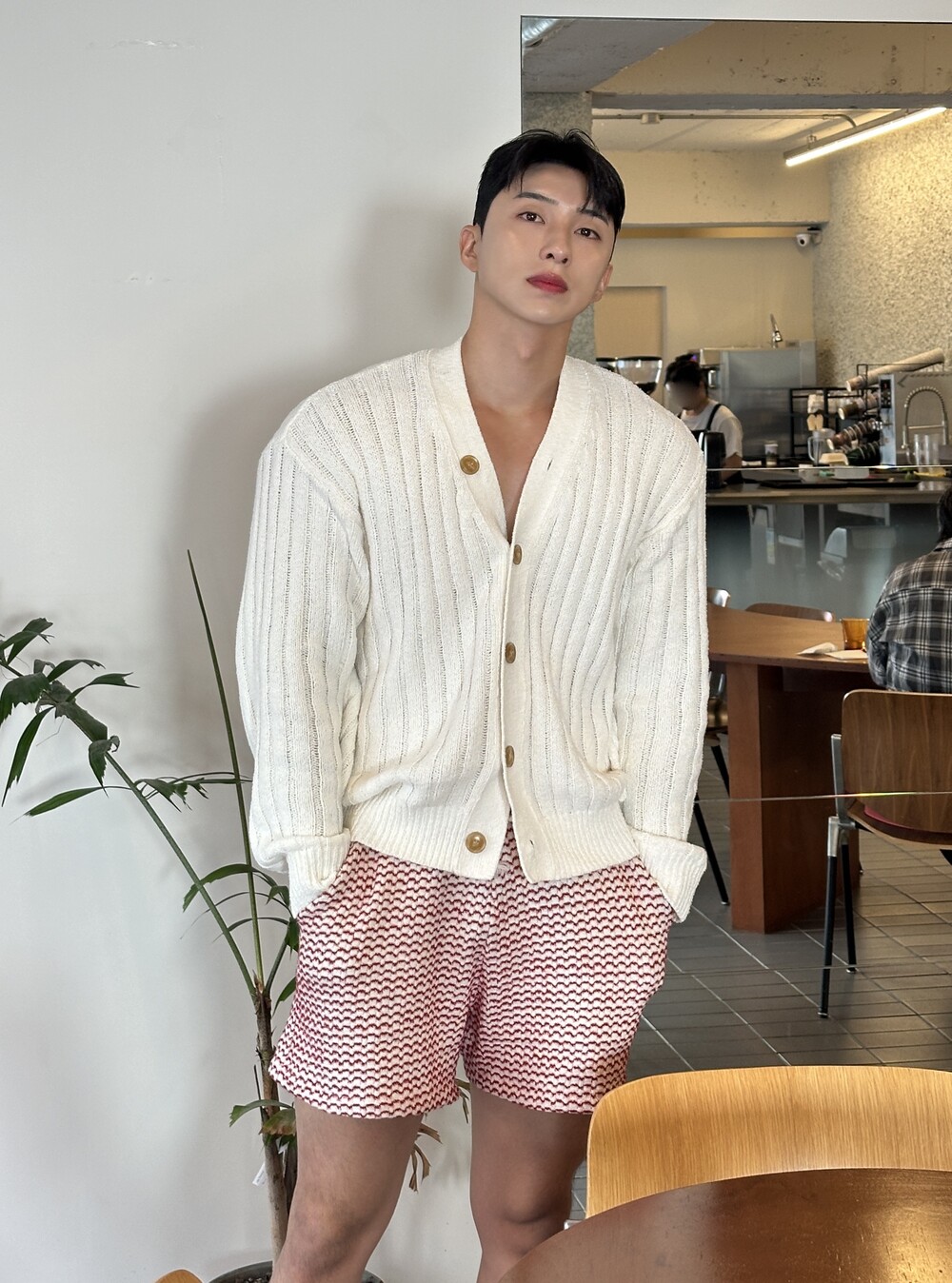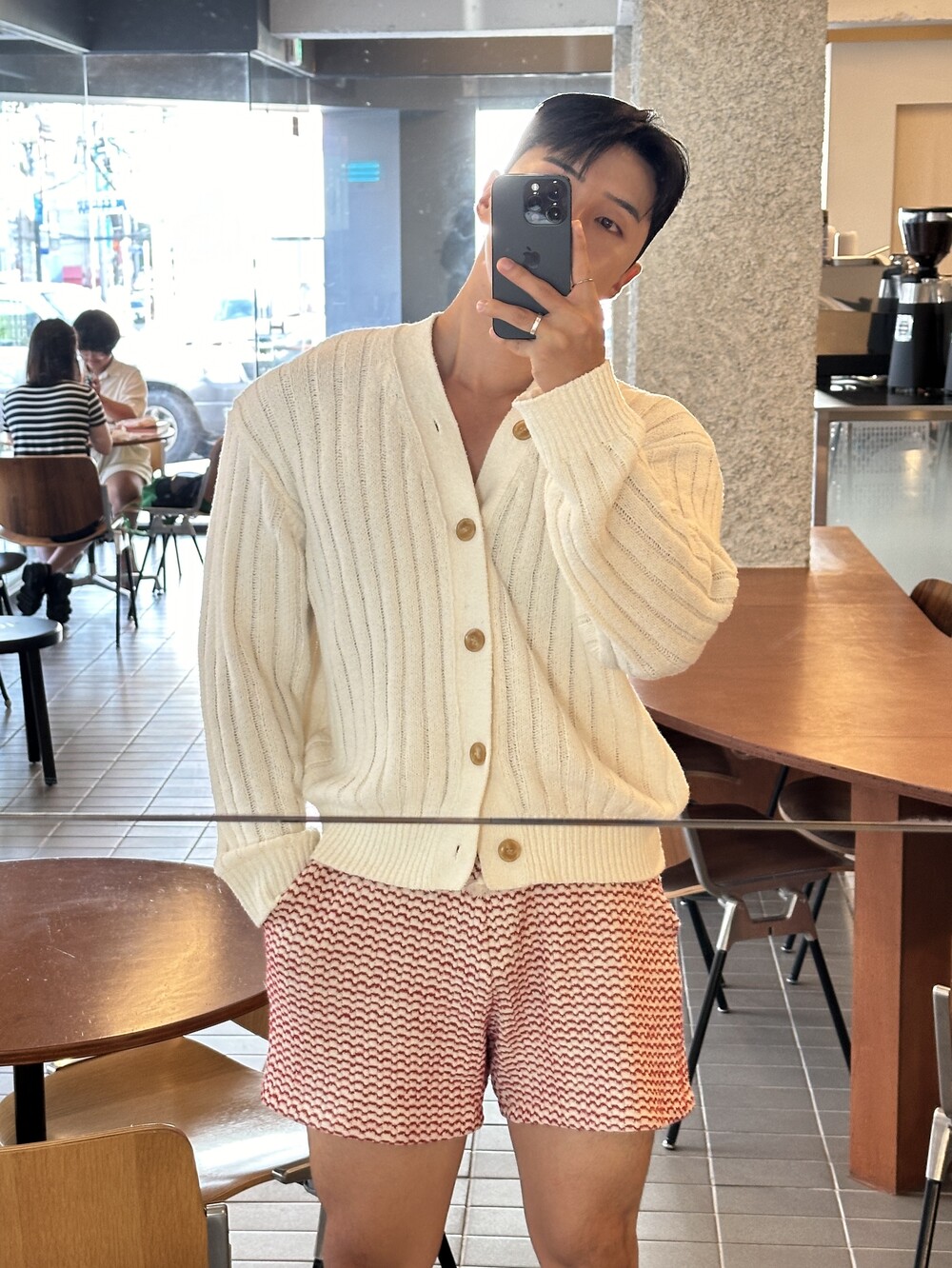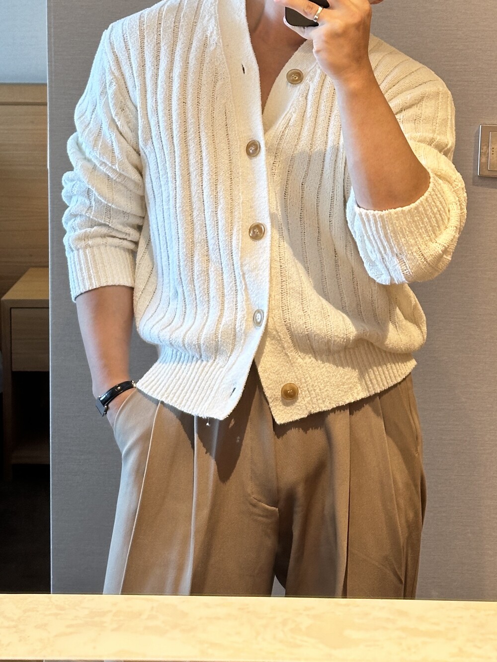 -적당히 크롭한 기장감으로 반바지, 긴바지 모두 다 잘 달라붙는 가디건 찾으신다면 추천드립니다.