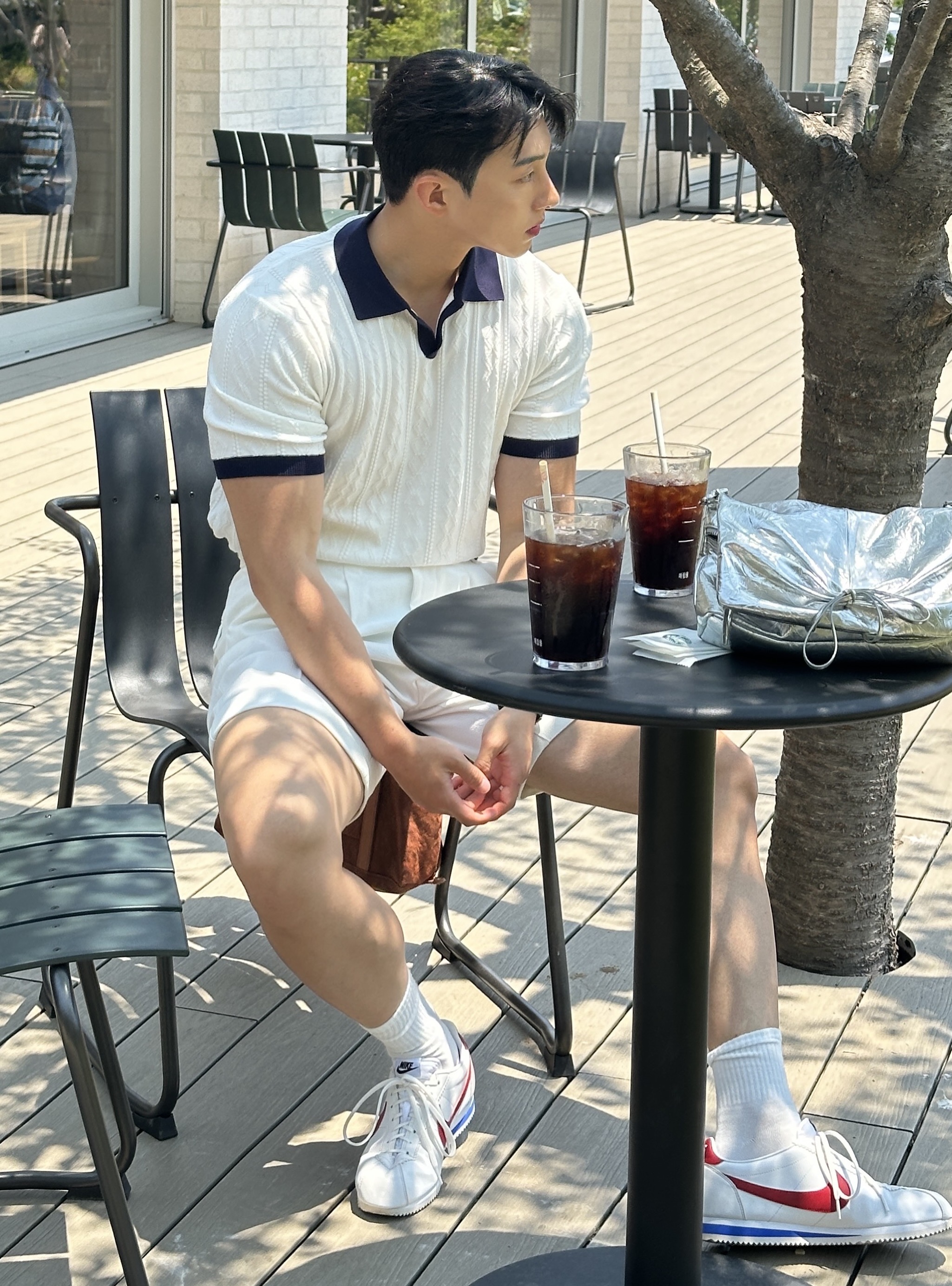 이태리 배색 아이스 린넨 카라 반팔 - 머슬핏 (2 Color)