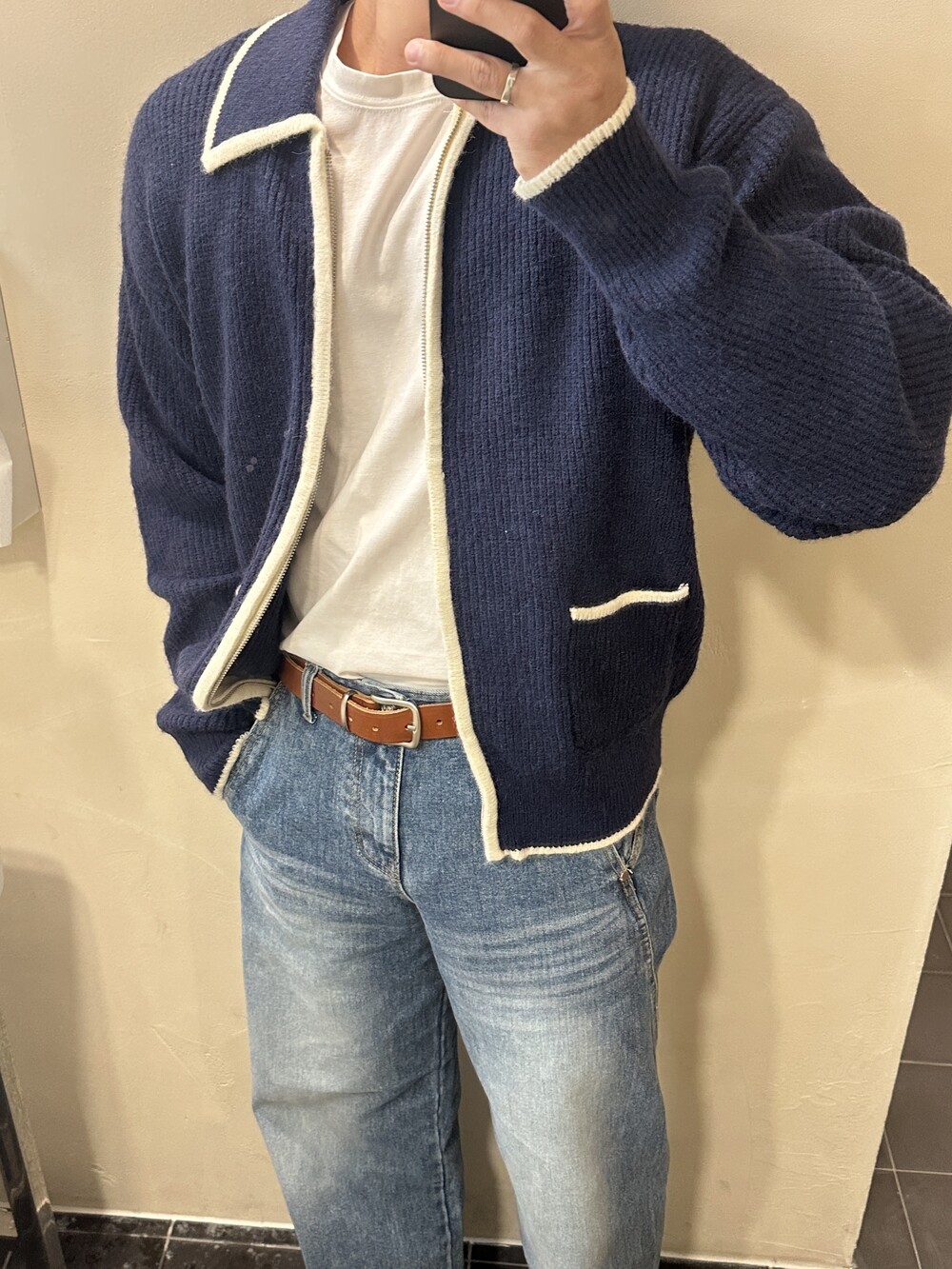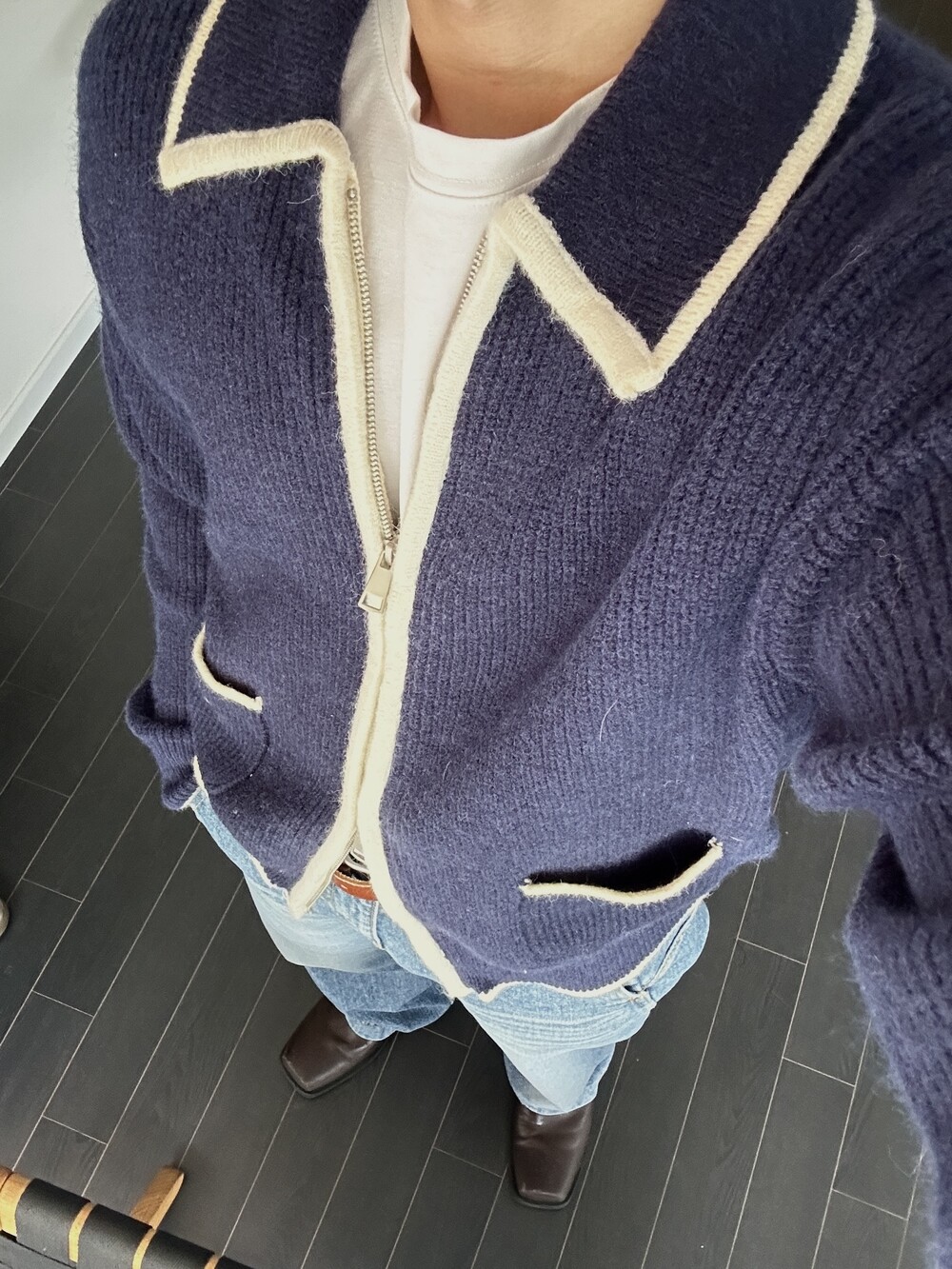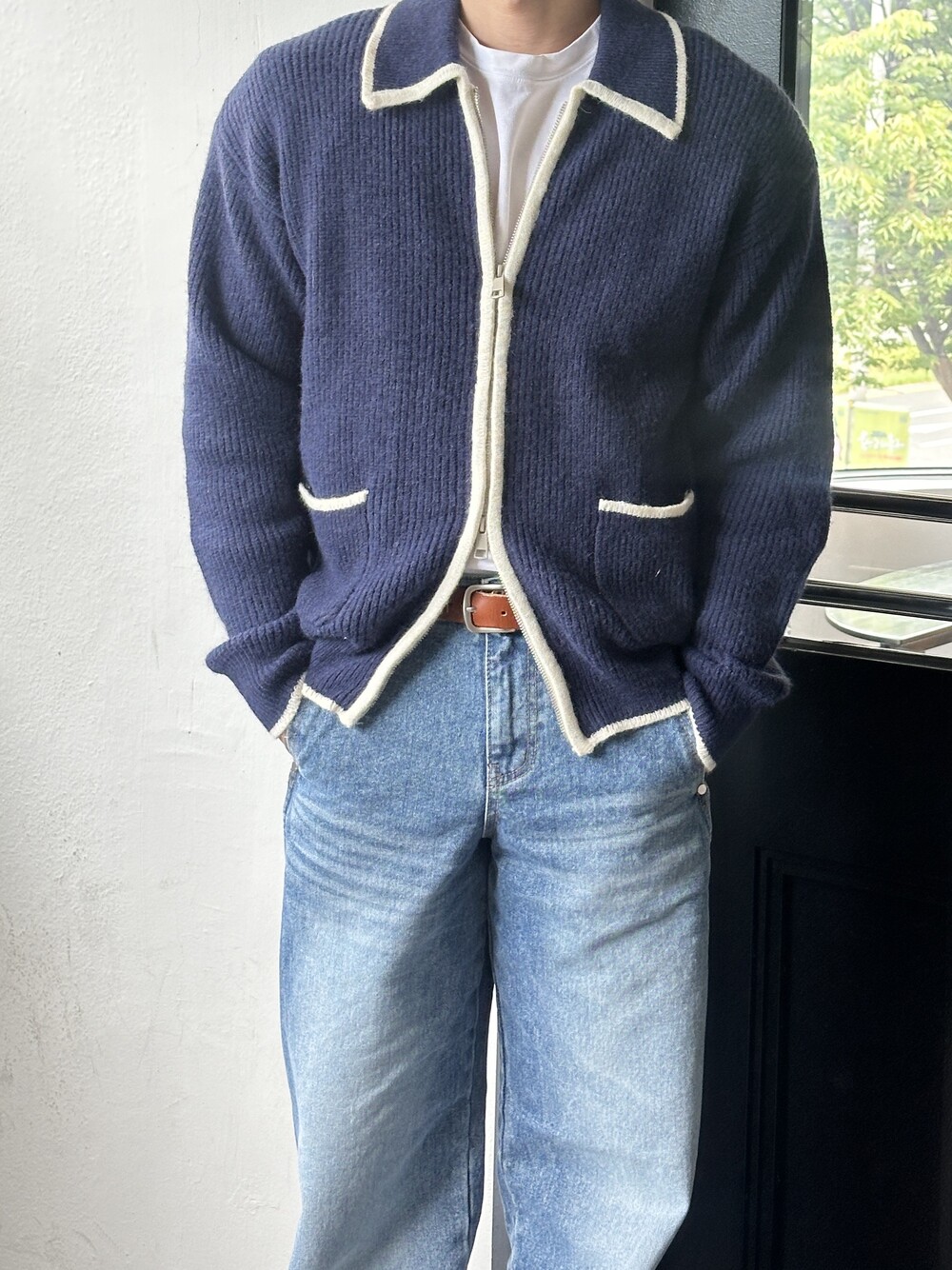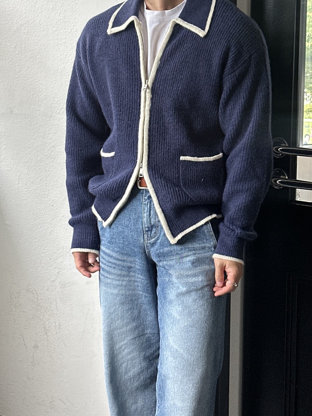 위드 배색 클래식 가디건 니트 (4 Color)