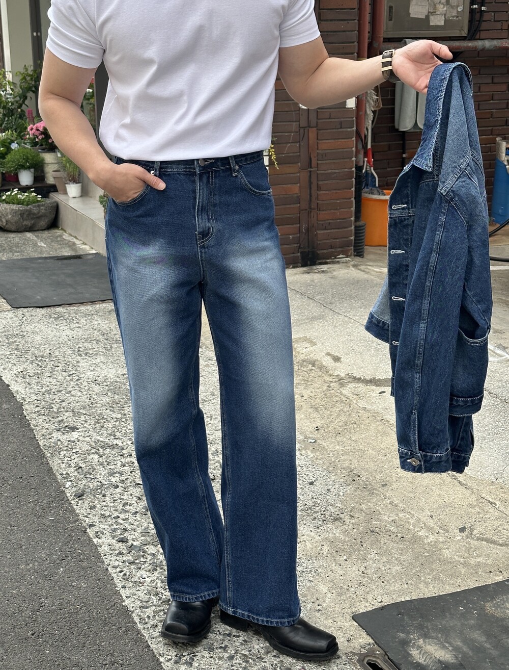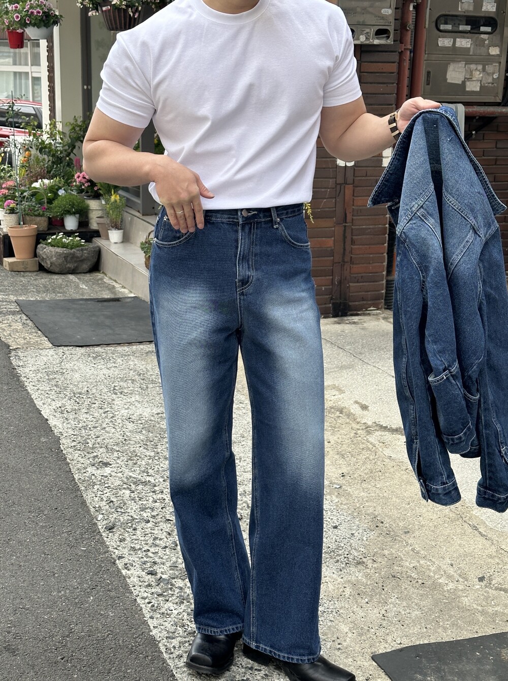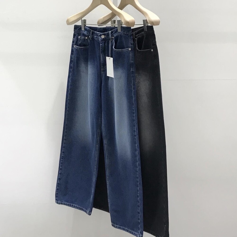 브러쉬 워싱 데님 와이드 팬츠 (2 color)
