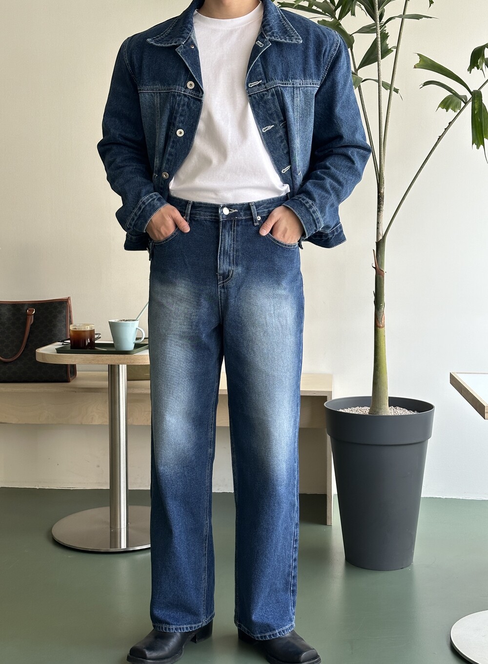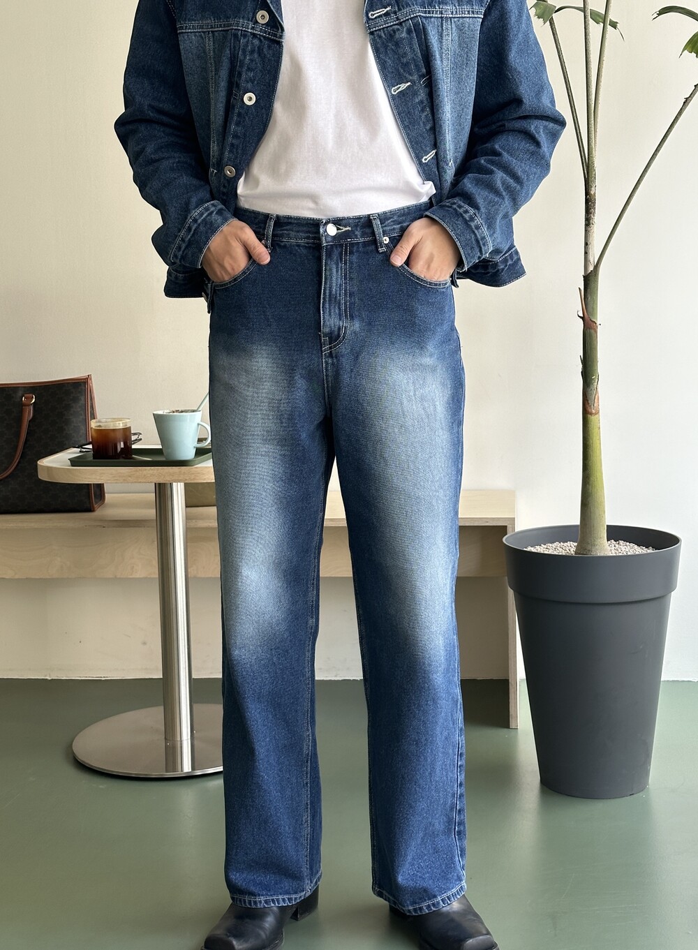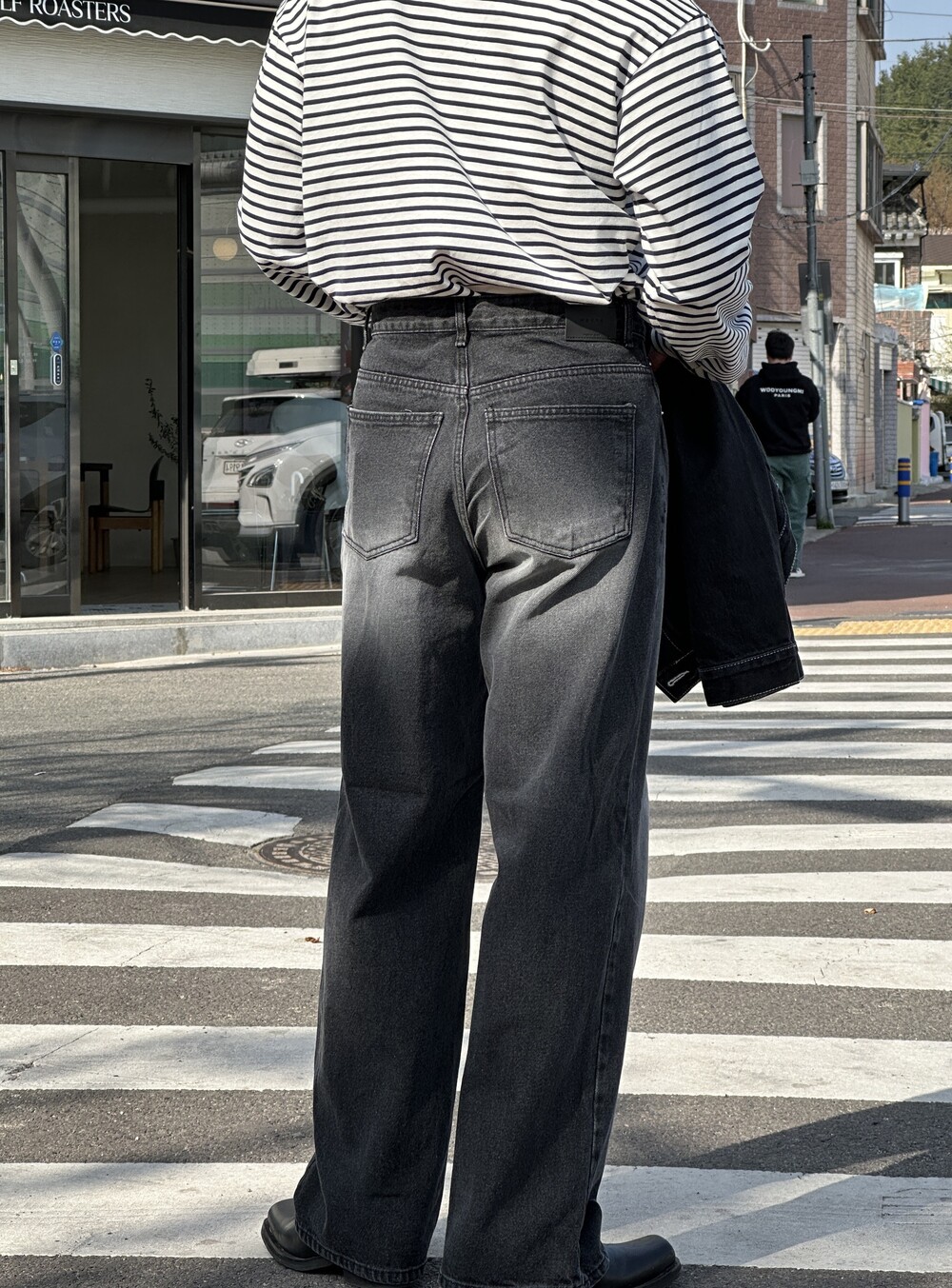 브러쉬 워싱 데님 와이드 팬츠 (2 color)
