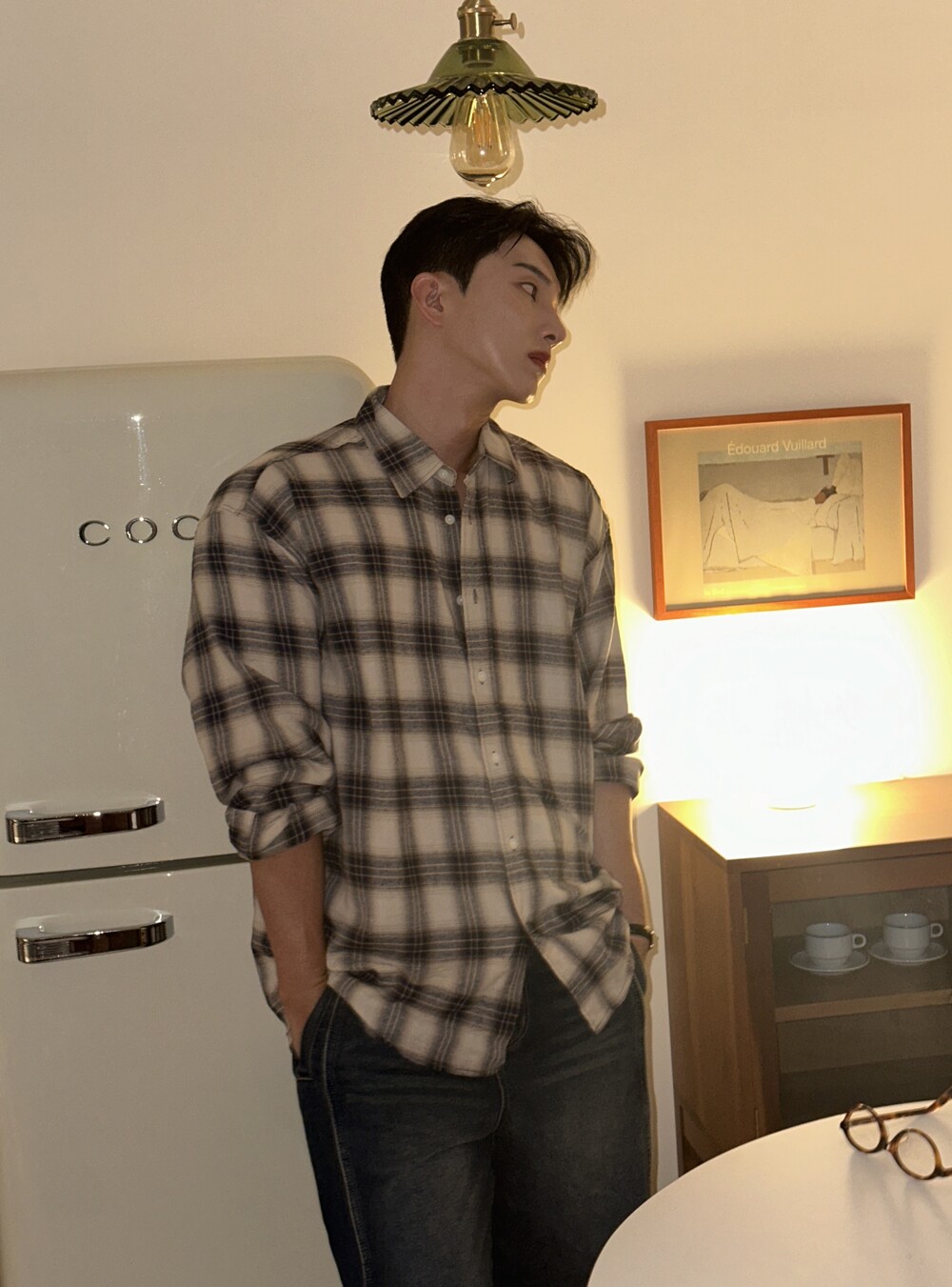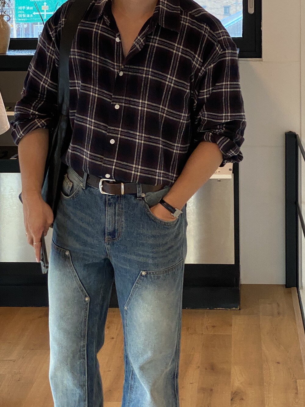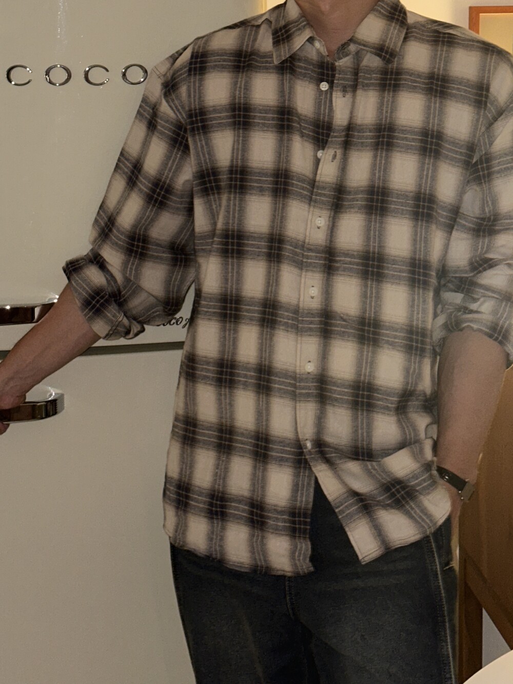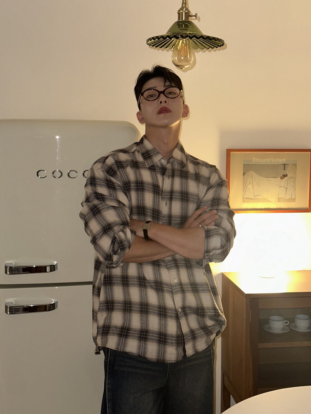 -딥하고 유니크한 색감의 코튼 체크 셔츠