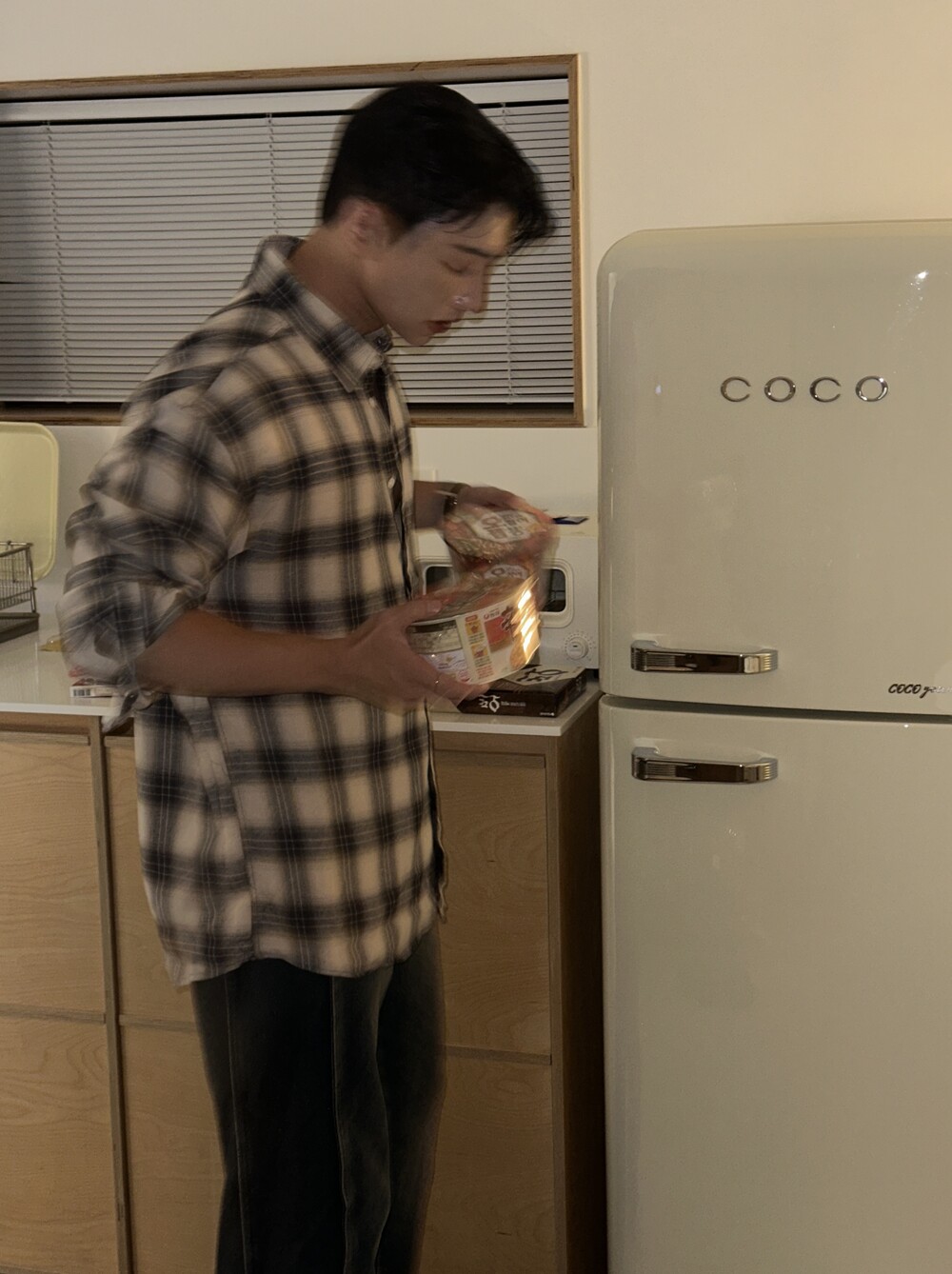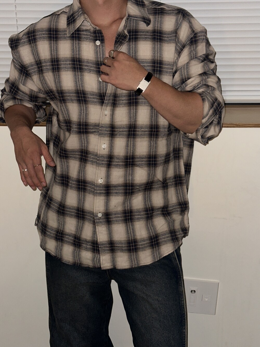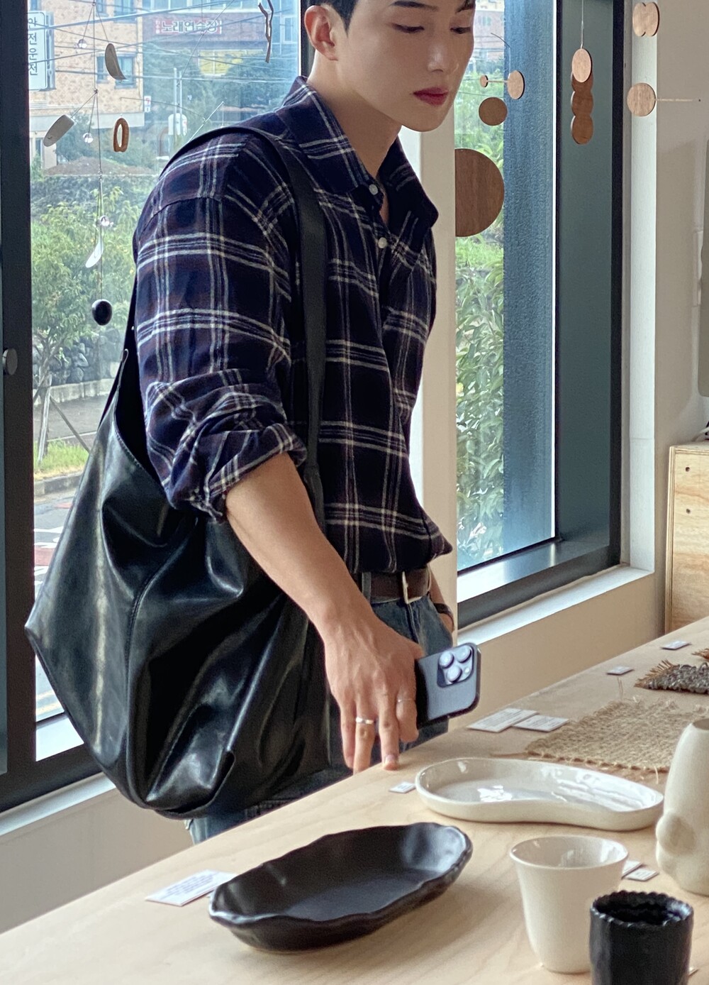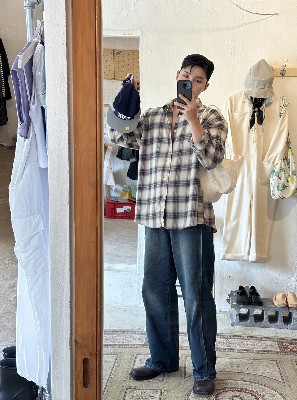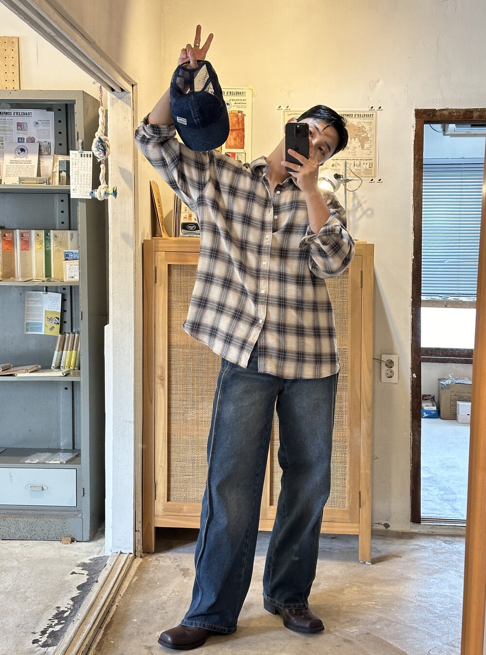 -딥하고 유니크한 색감의 코튼 체크 셔츠