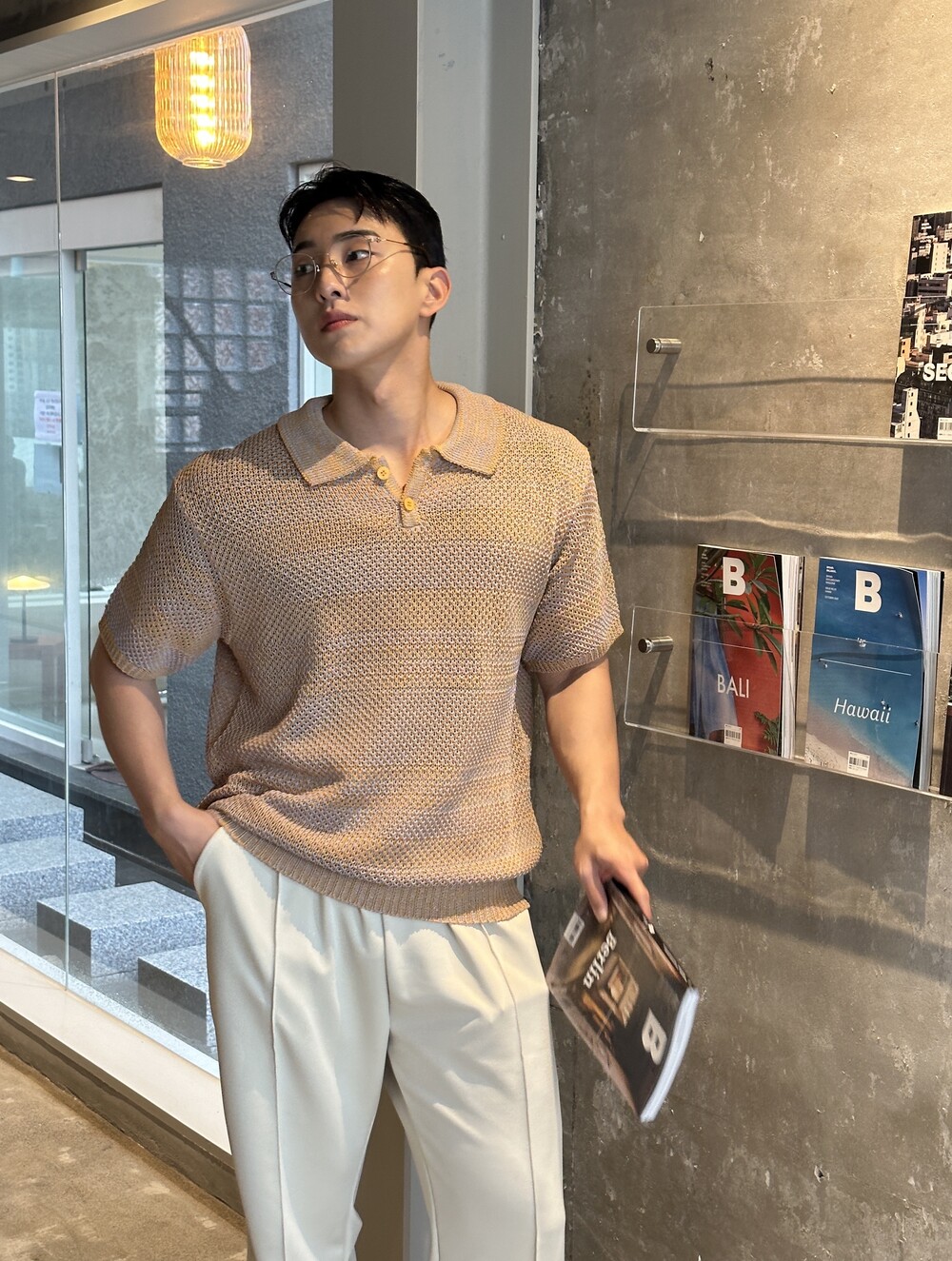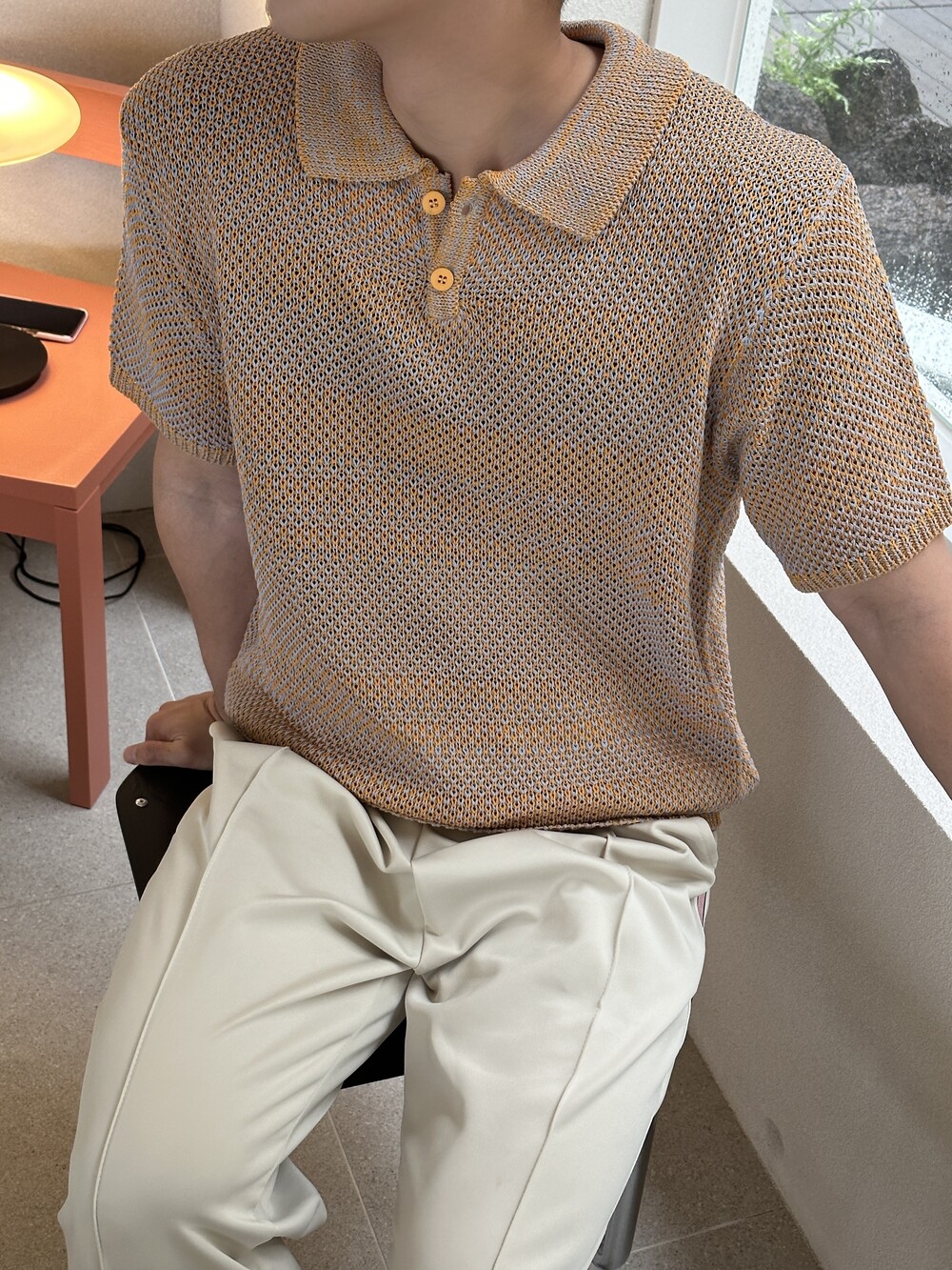 -여름에 입기 좋은 소재로 만들어진 고퀄리티 반팔 카라 니트