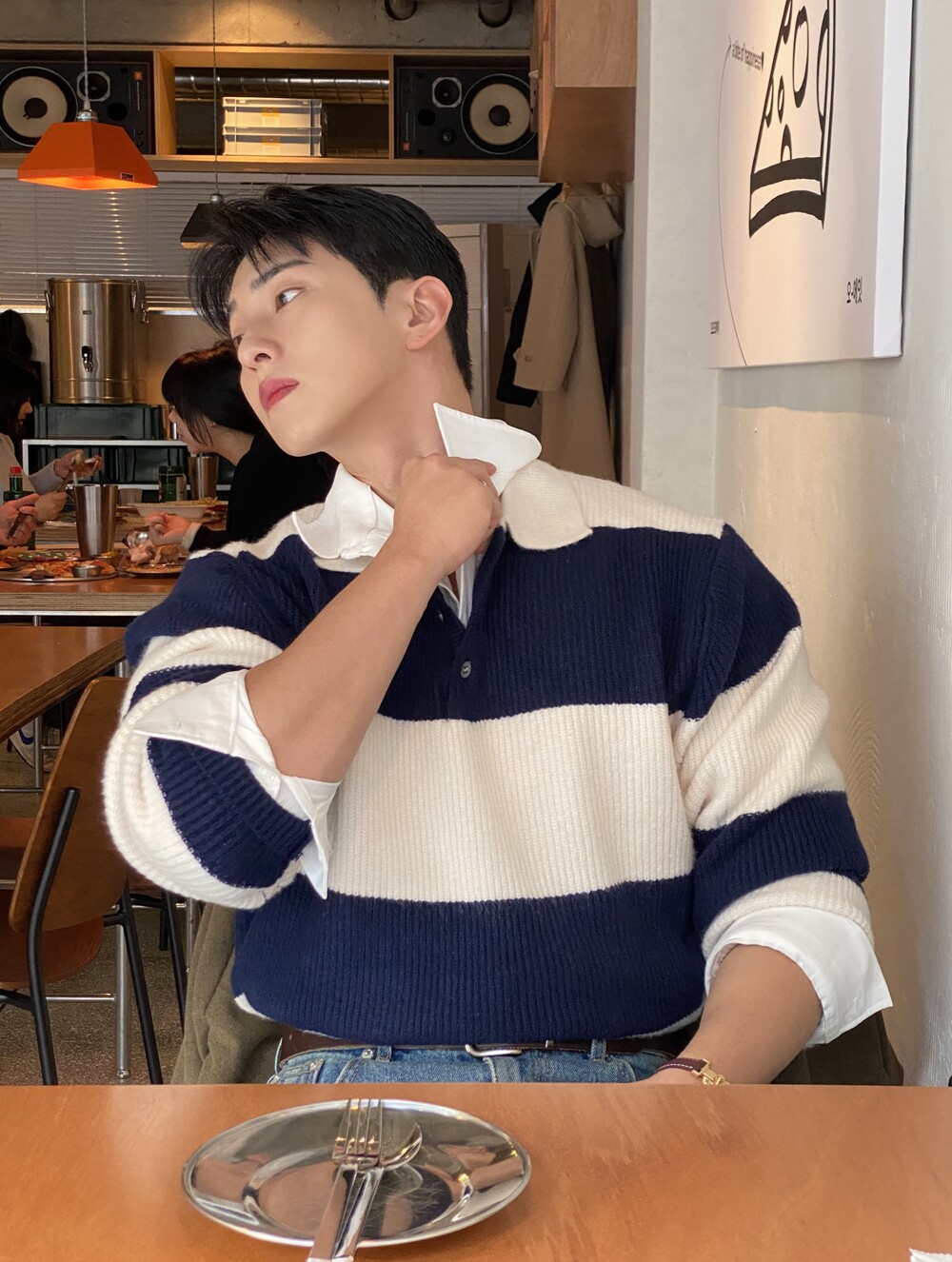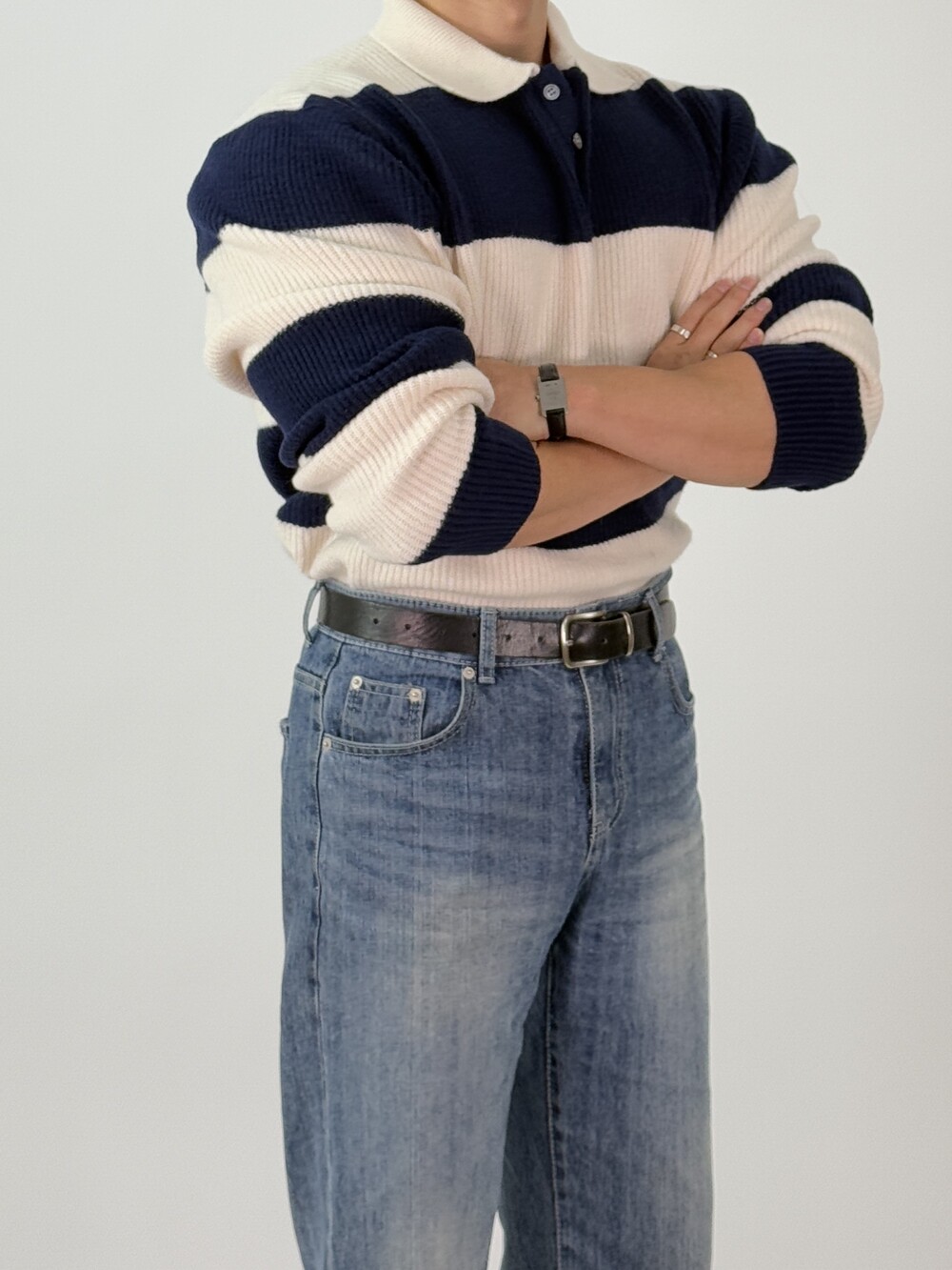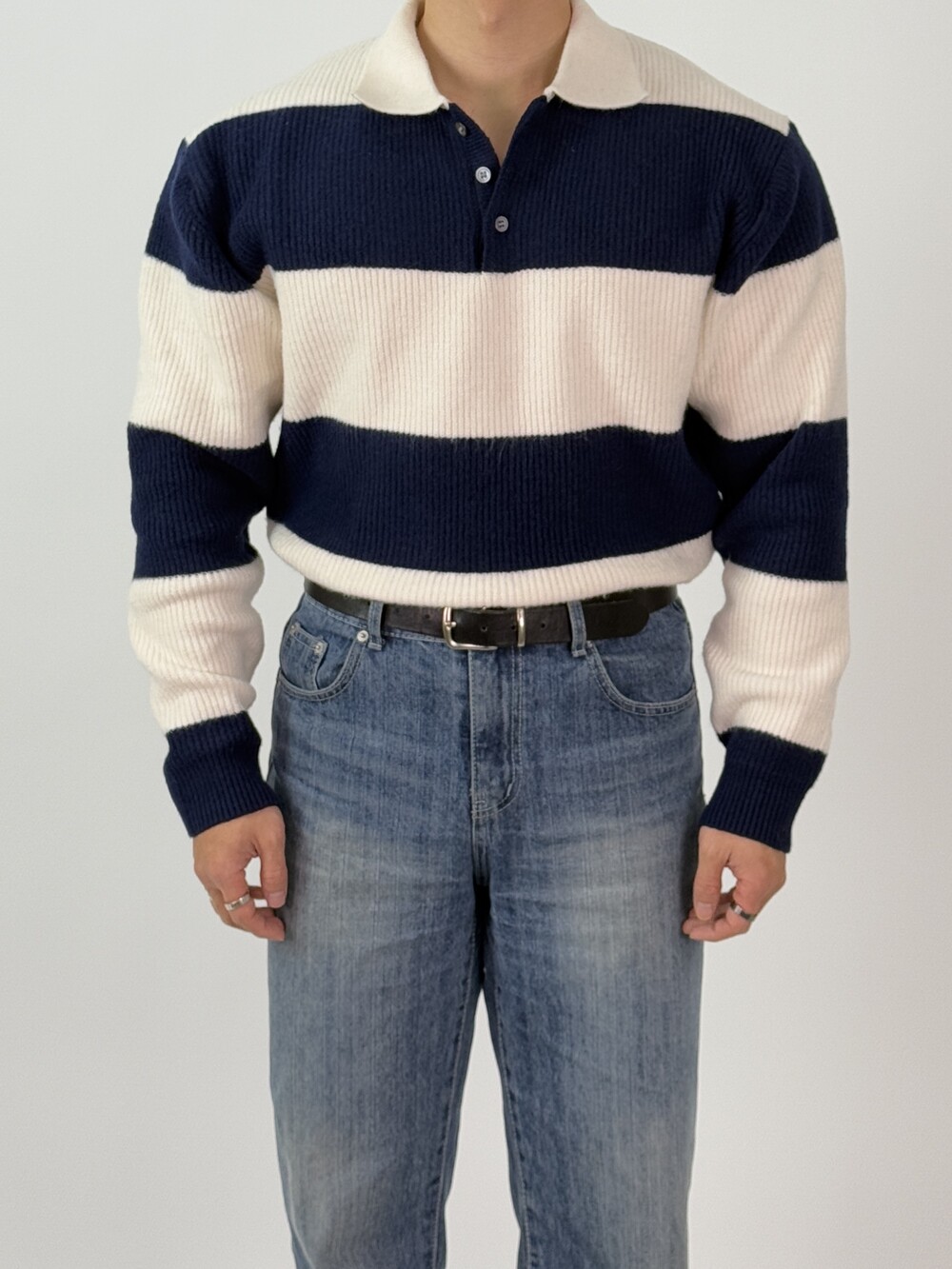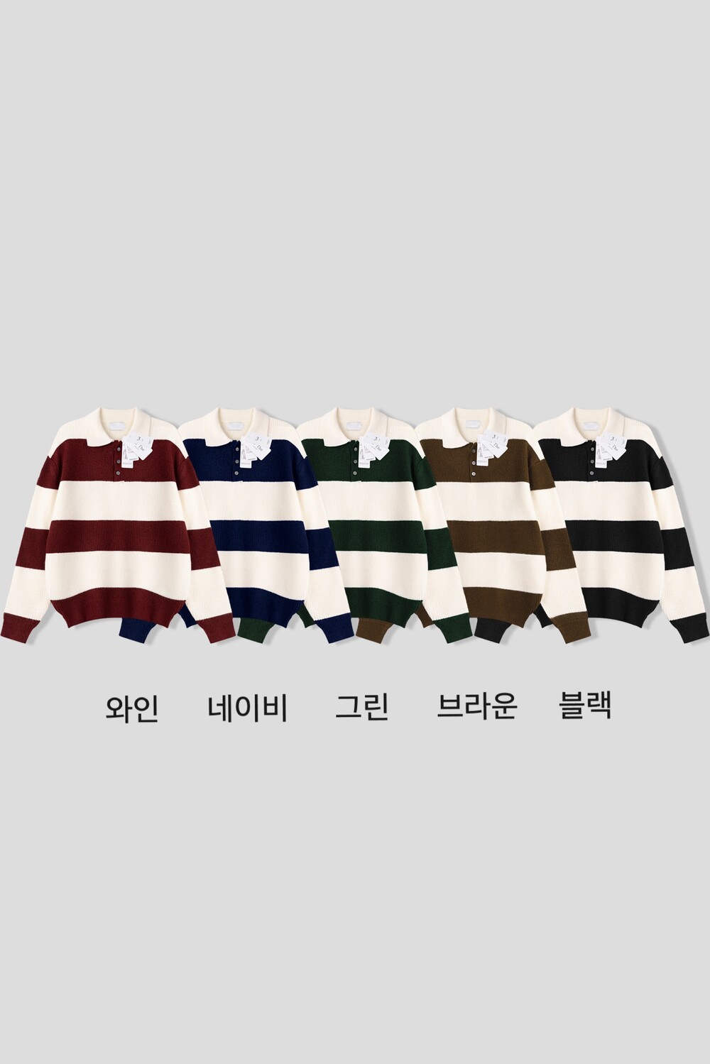스트라이프 하찌 단가라 카라 니트 (5 Color)