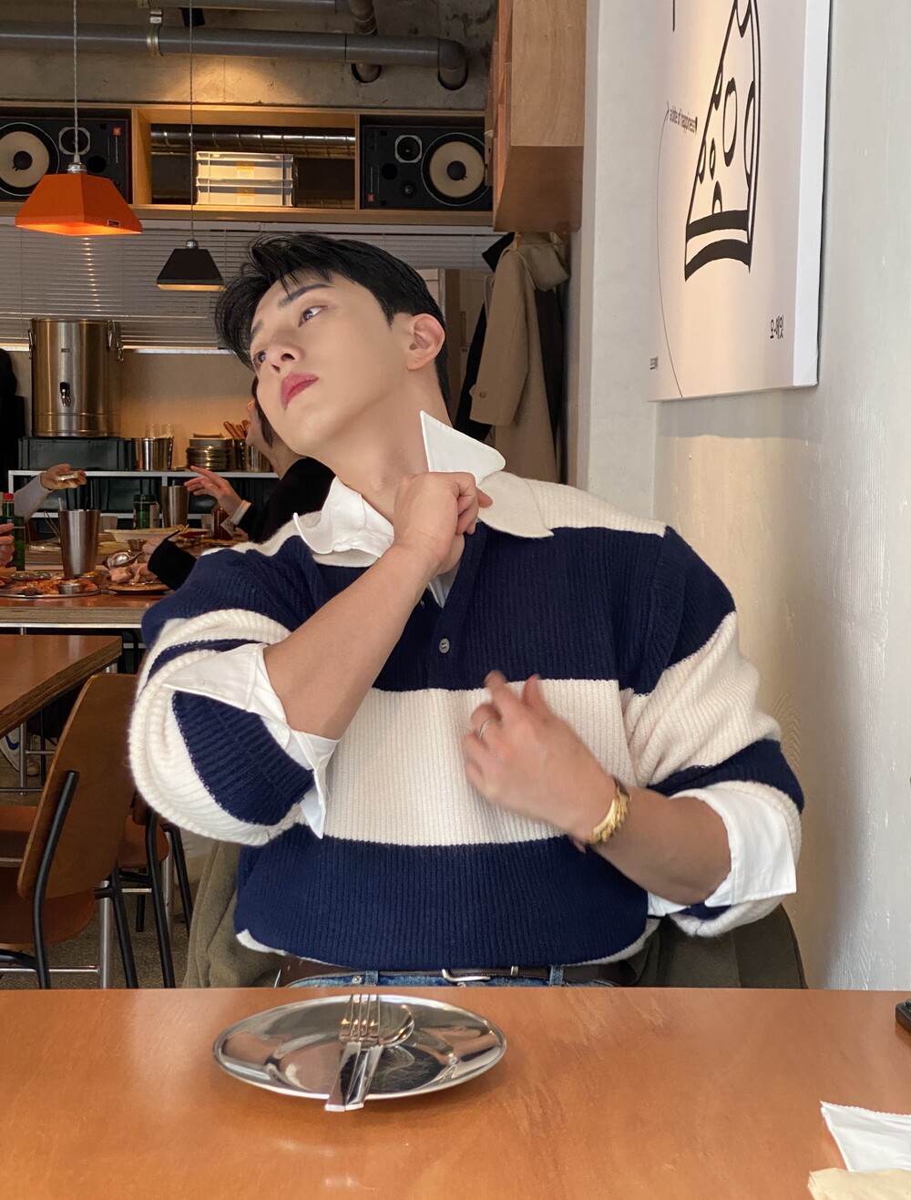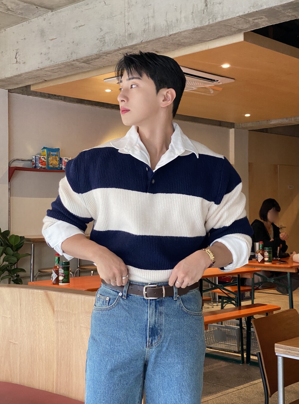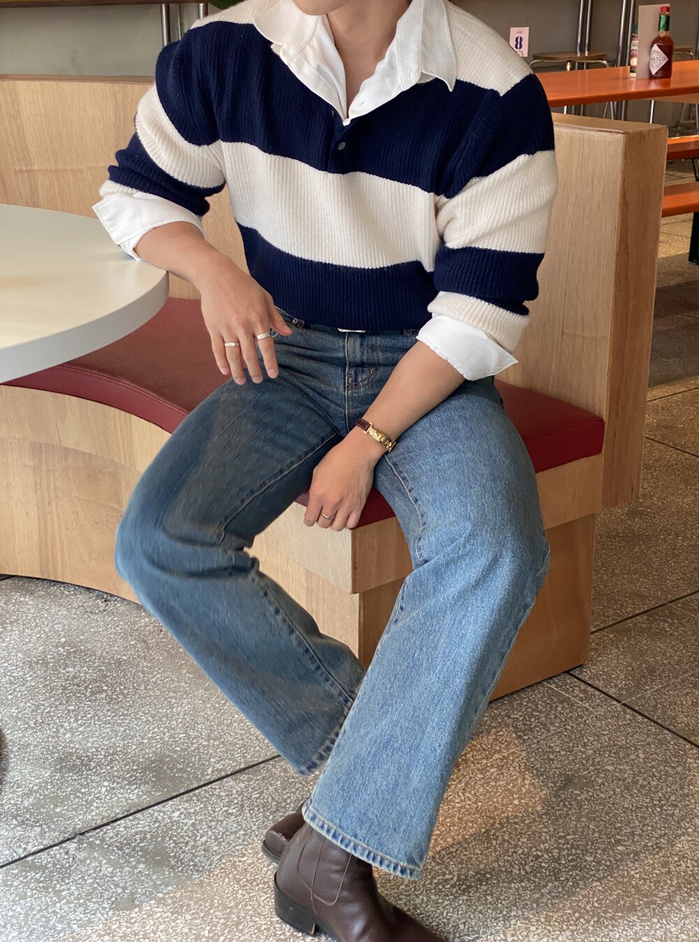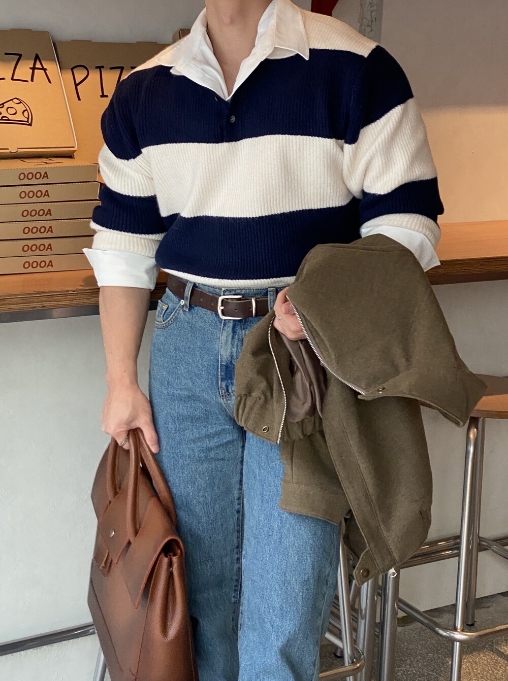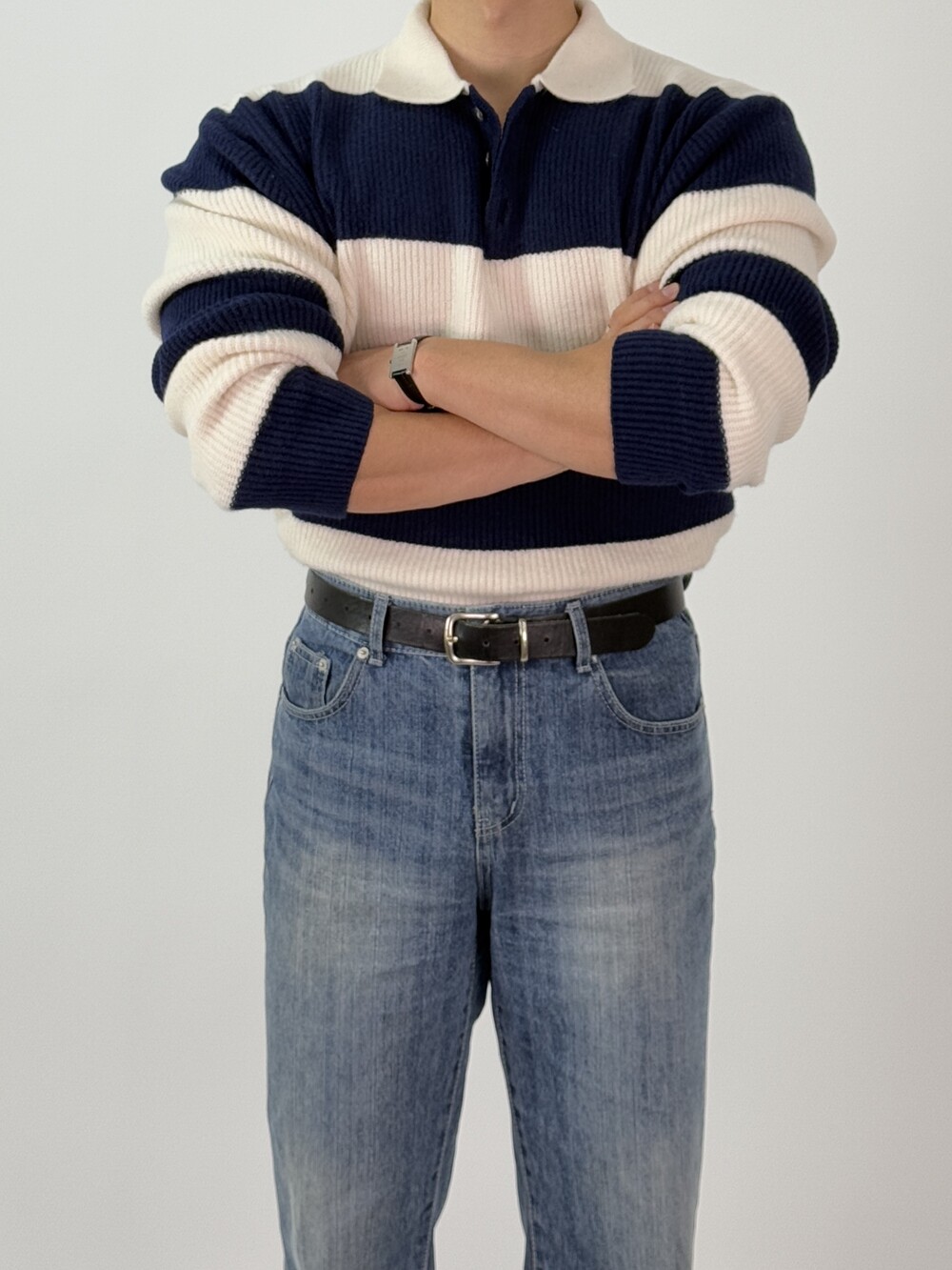 스트라이프 하찌 단가라 카라 니트 (5 Color)