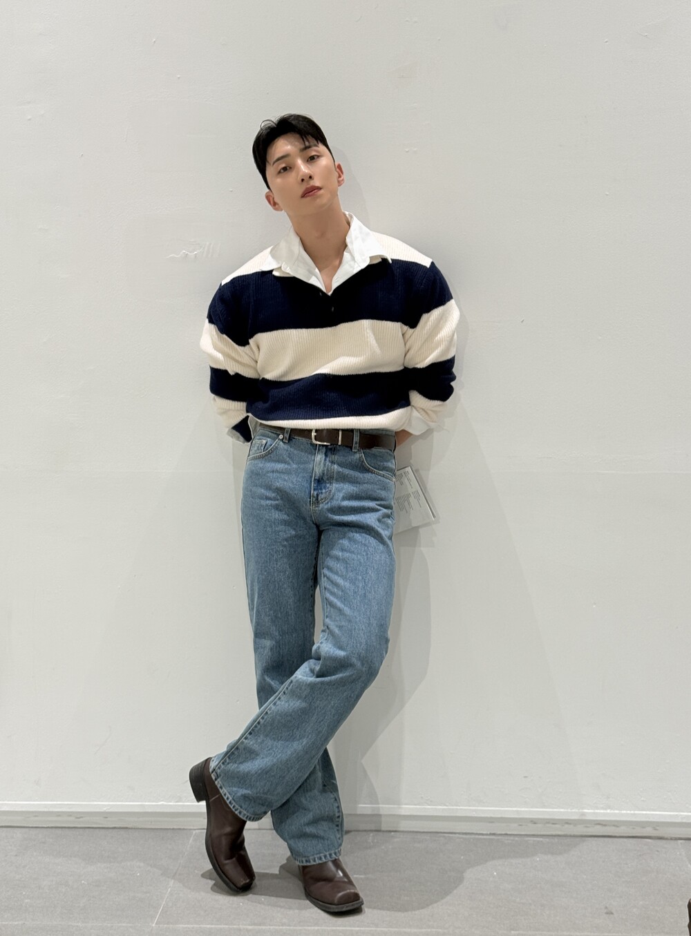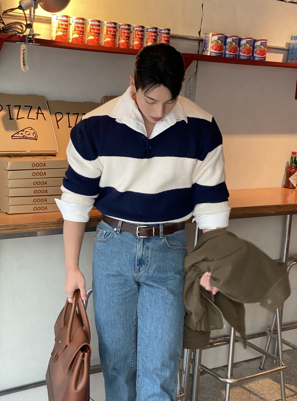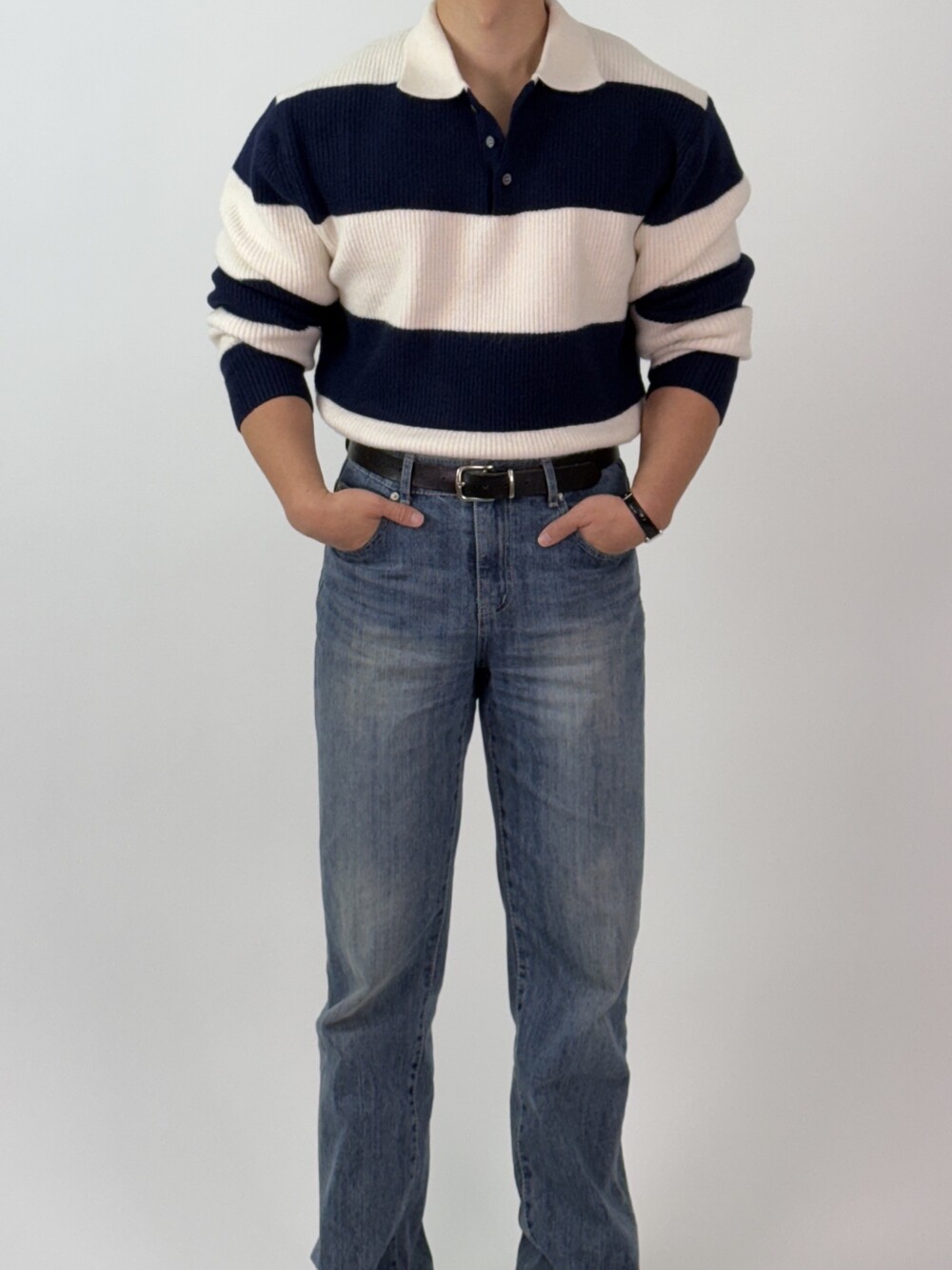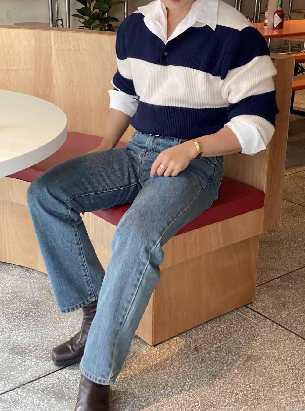 스트라이프 하찌 단가라 카라 니트 (5 Color)