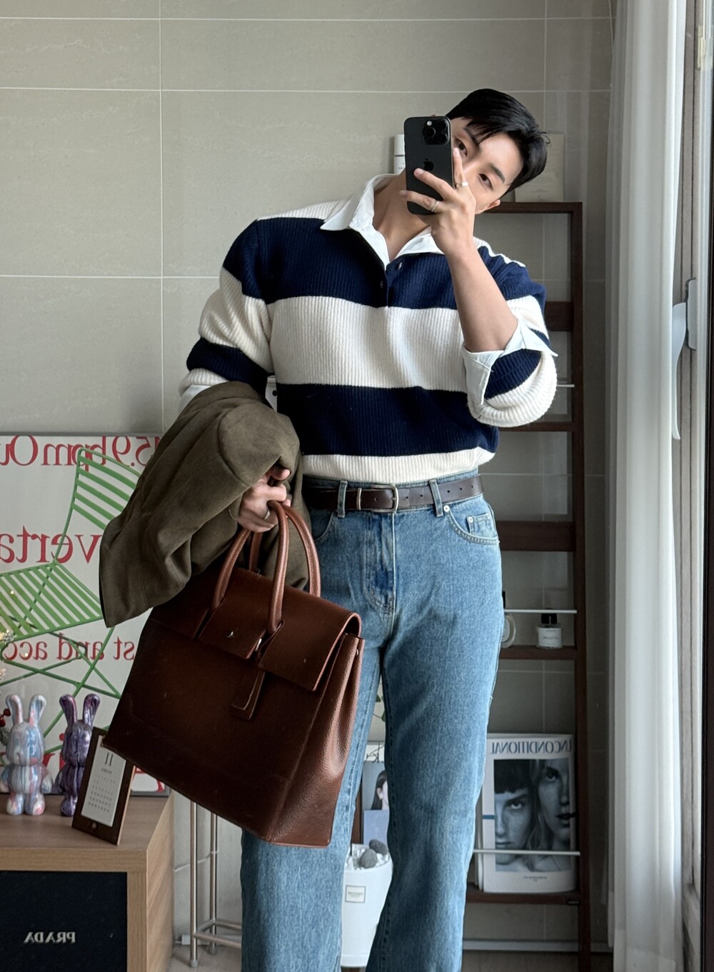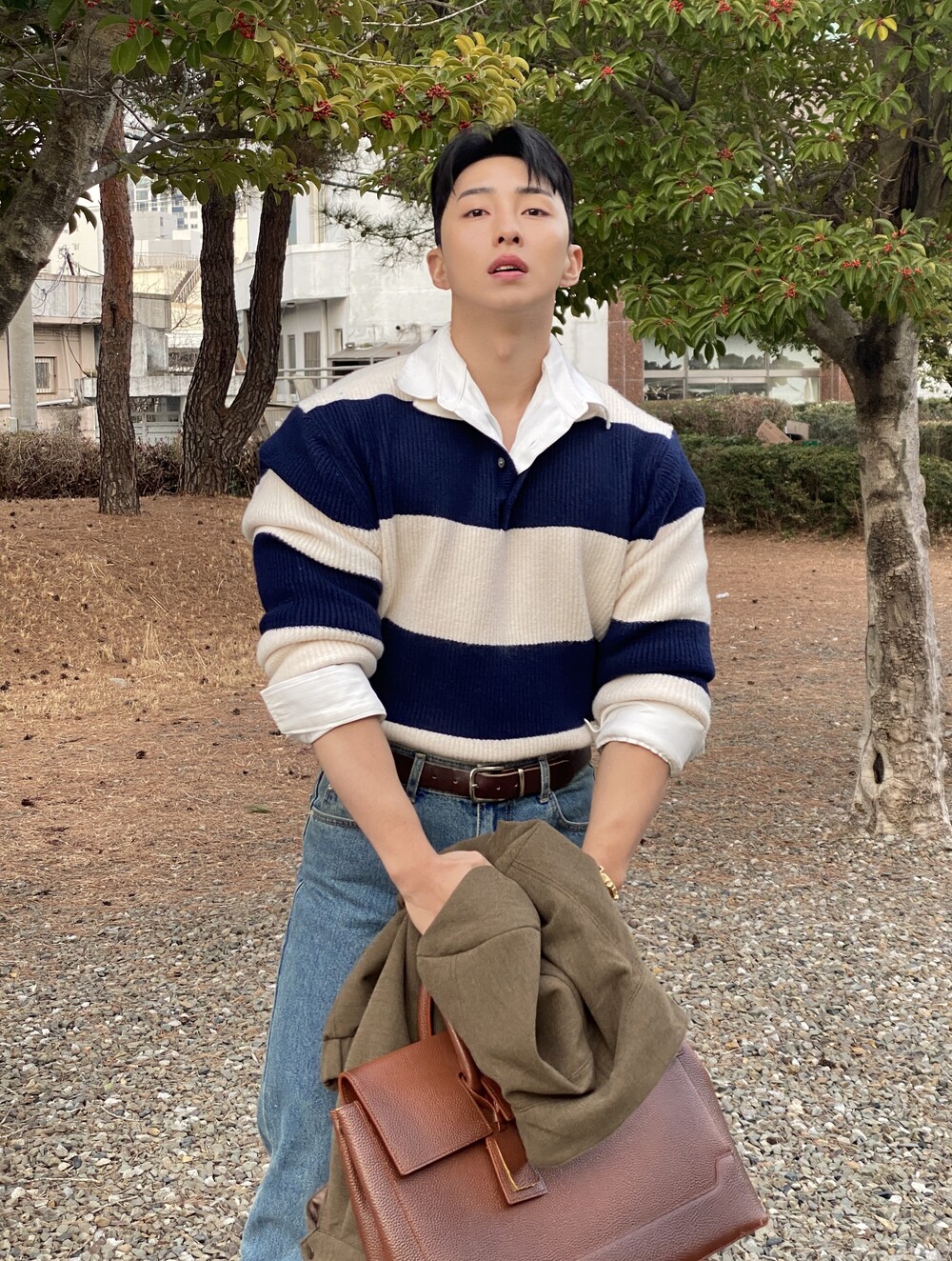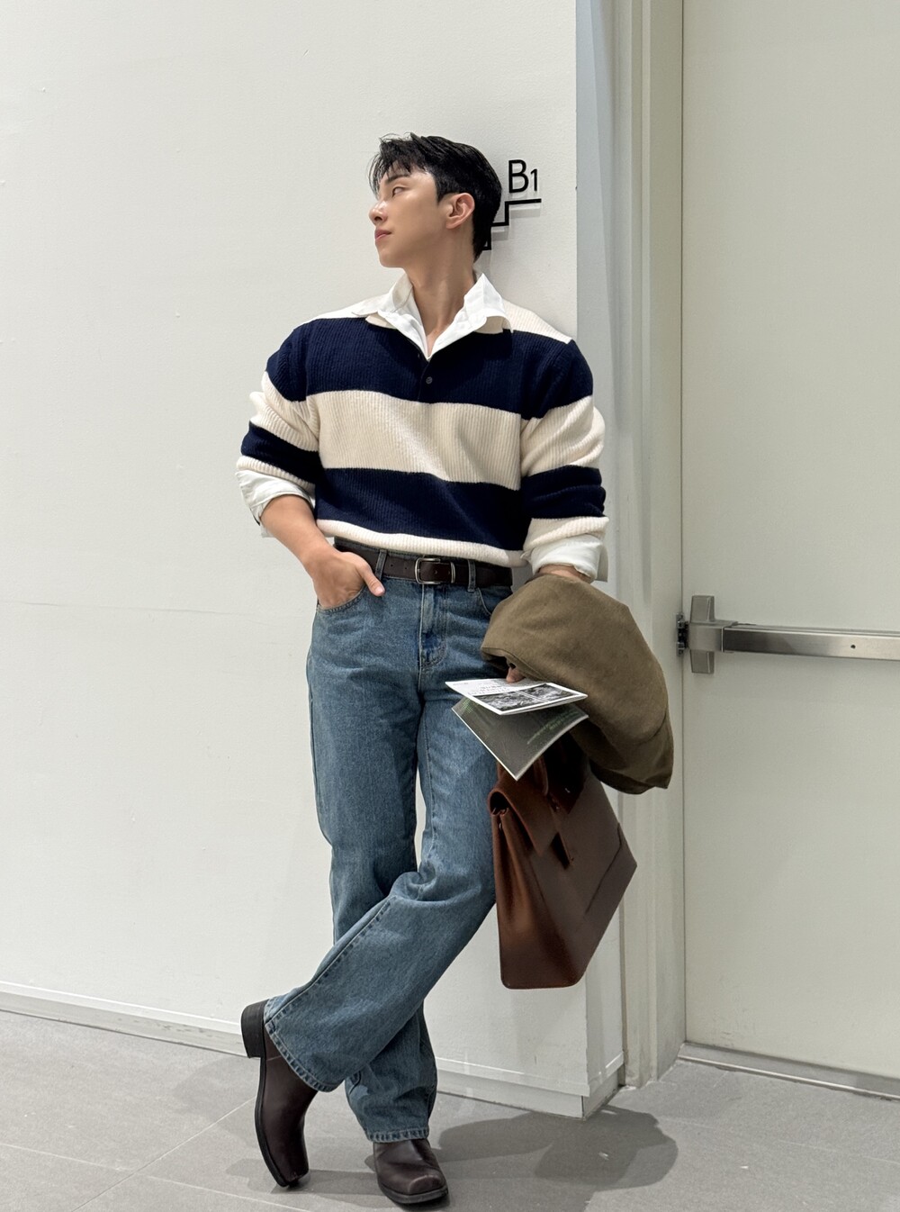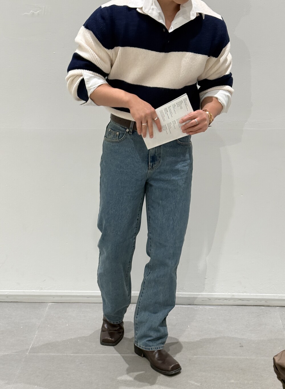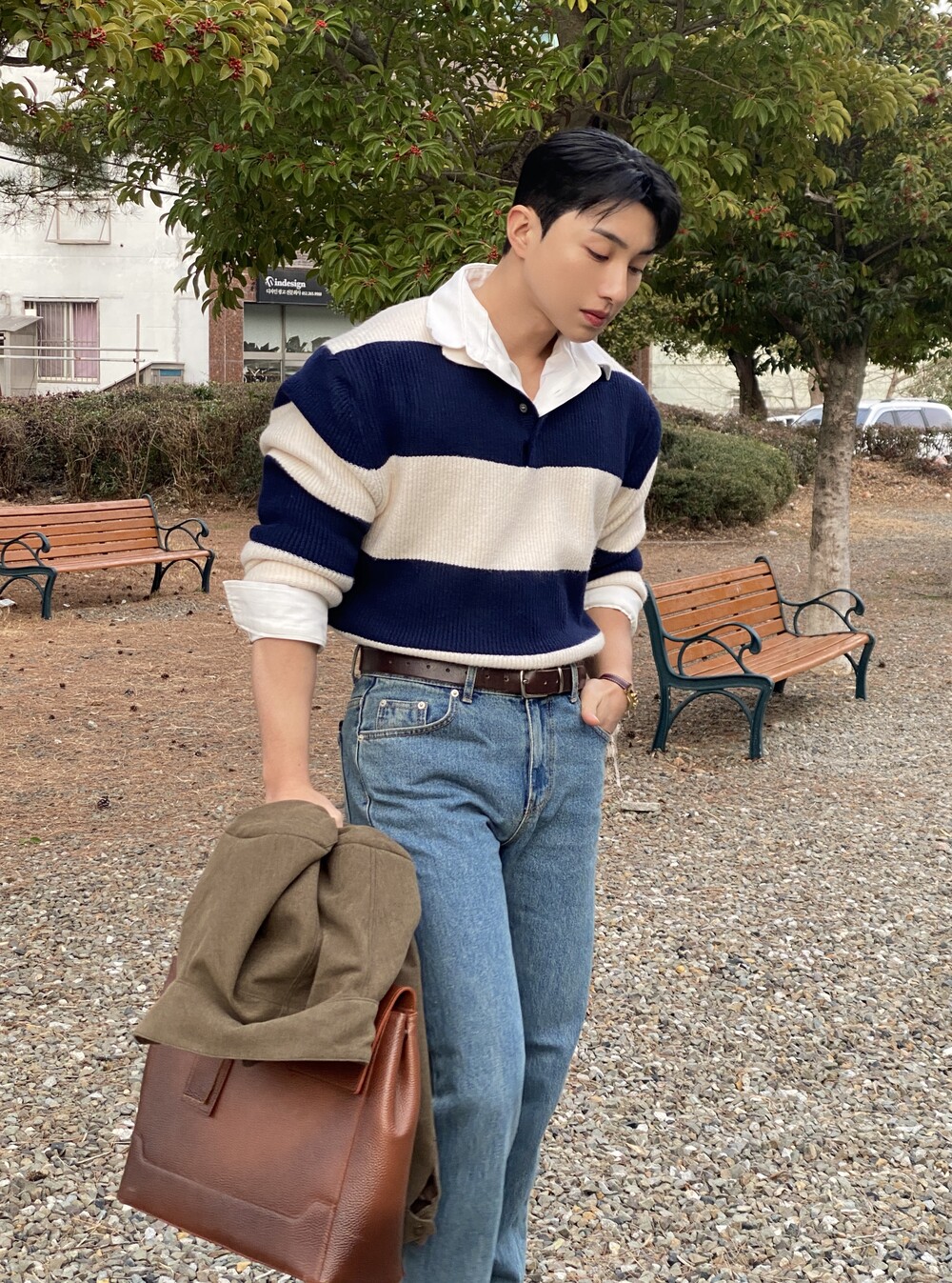 스트라이프 하찌 단가라 카라 니트 (5 Color)