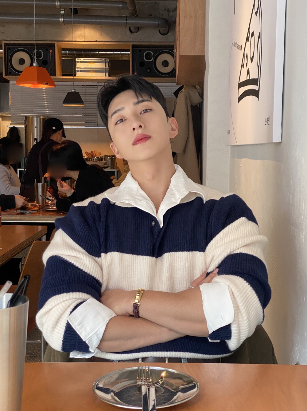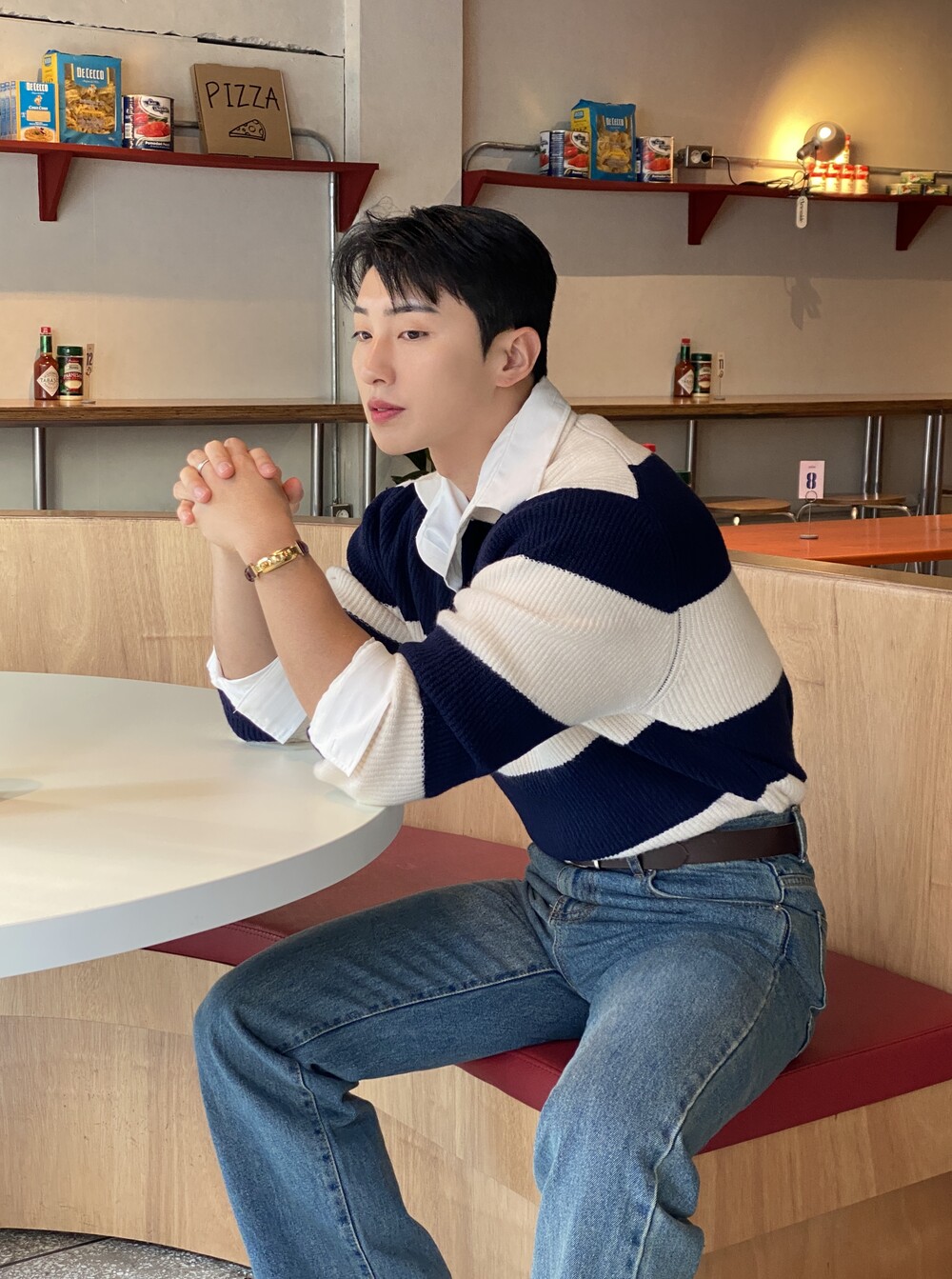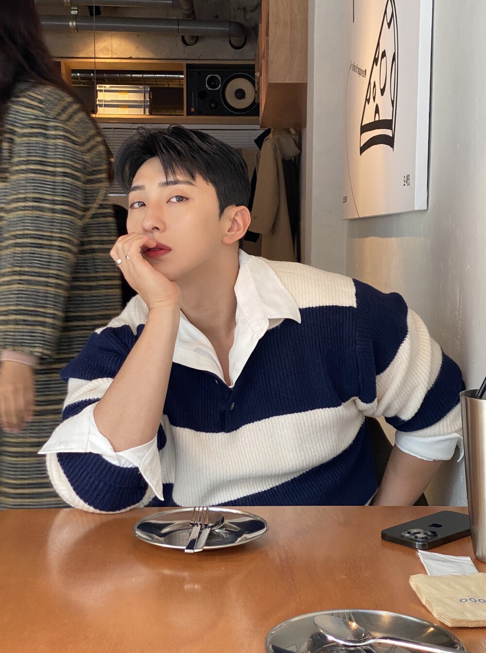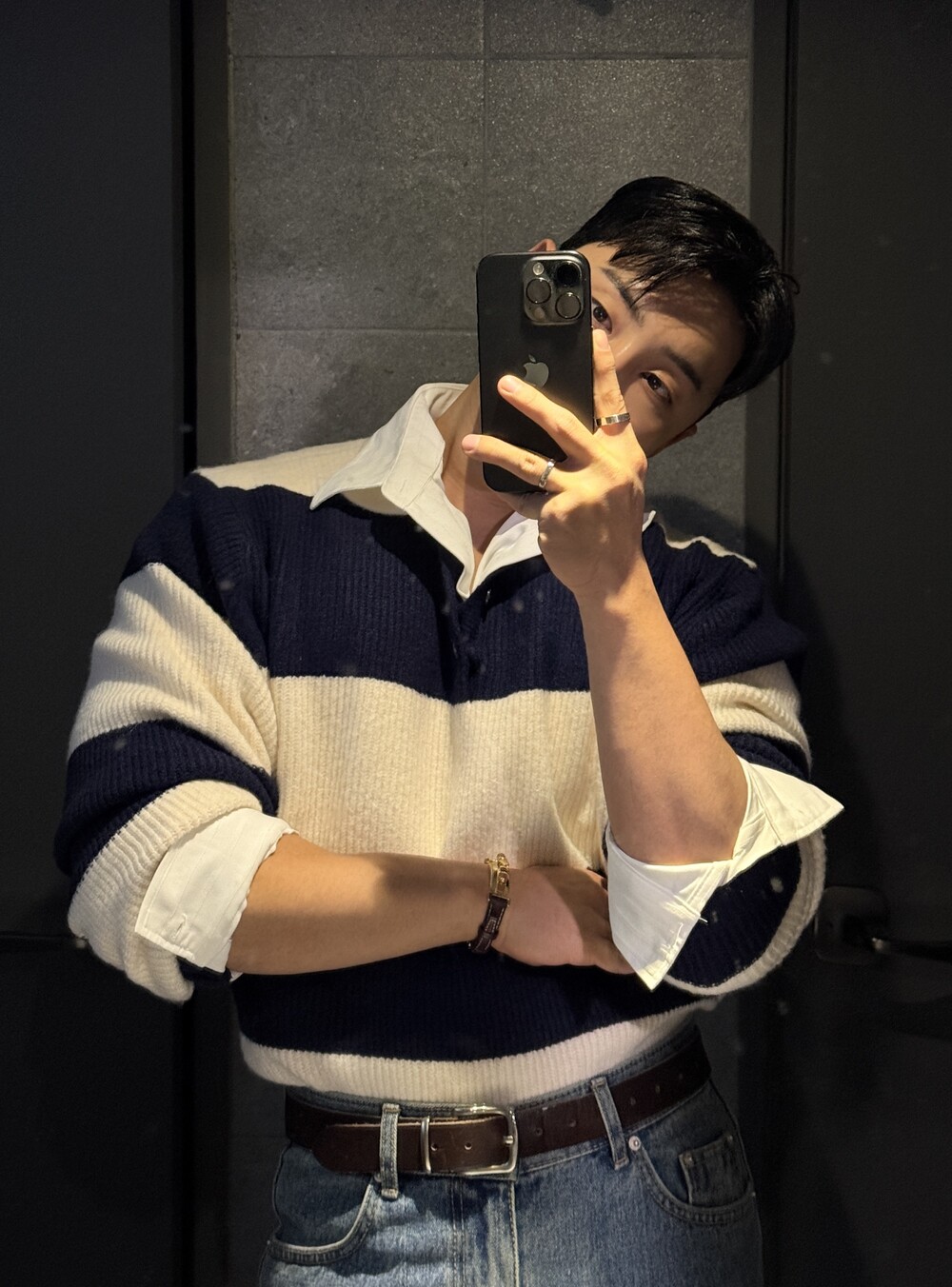 스트라이프 하찌 단가라 카라 니트 (5 Color)