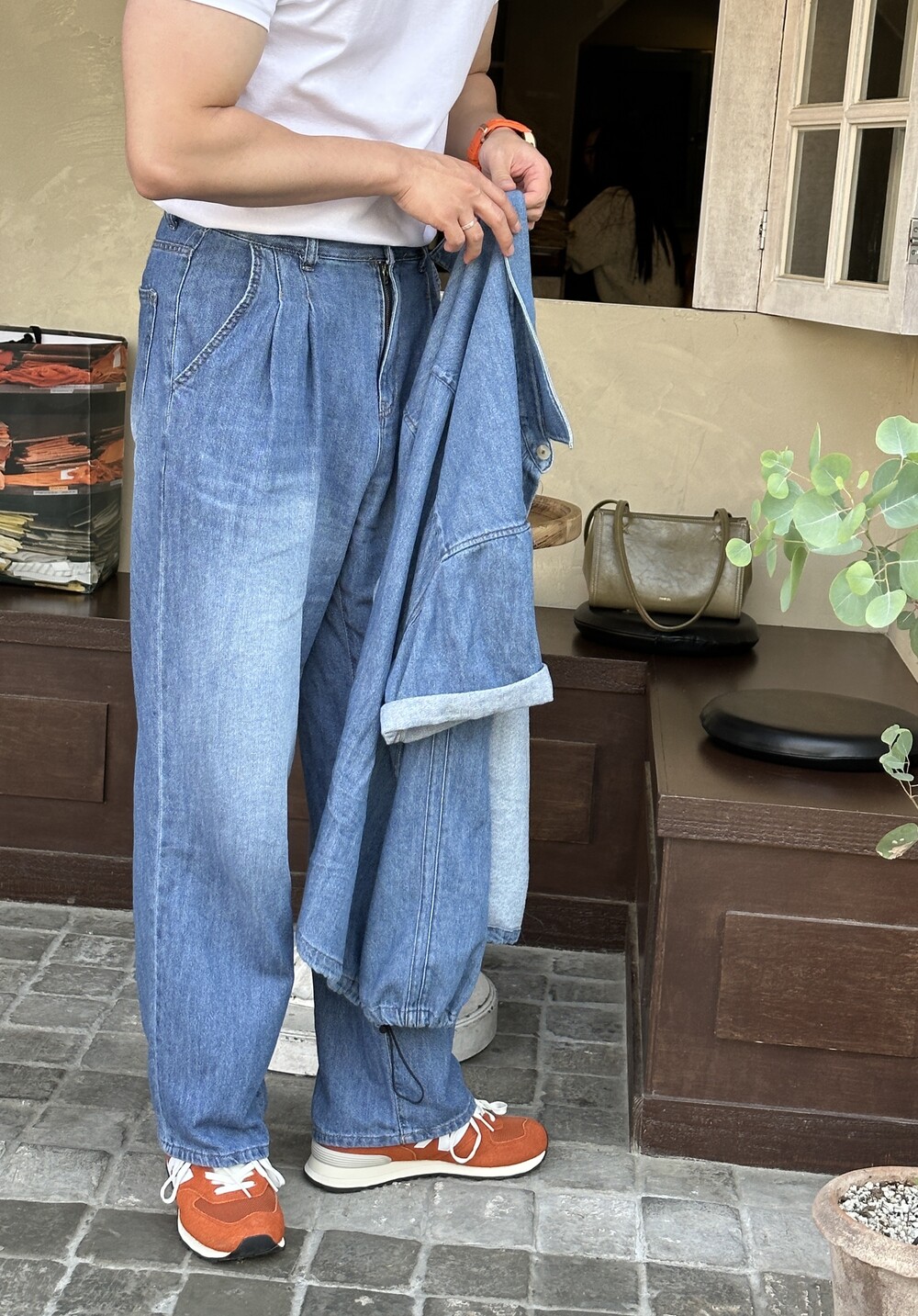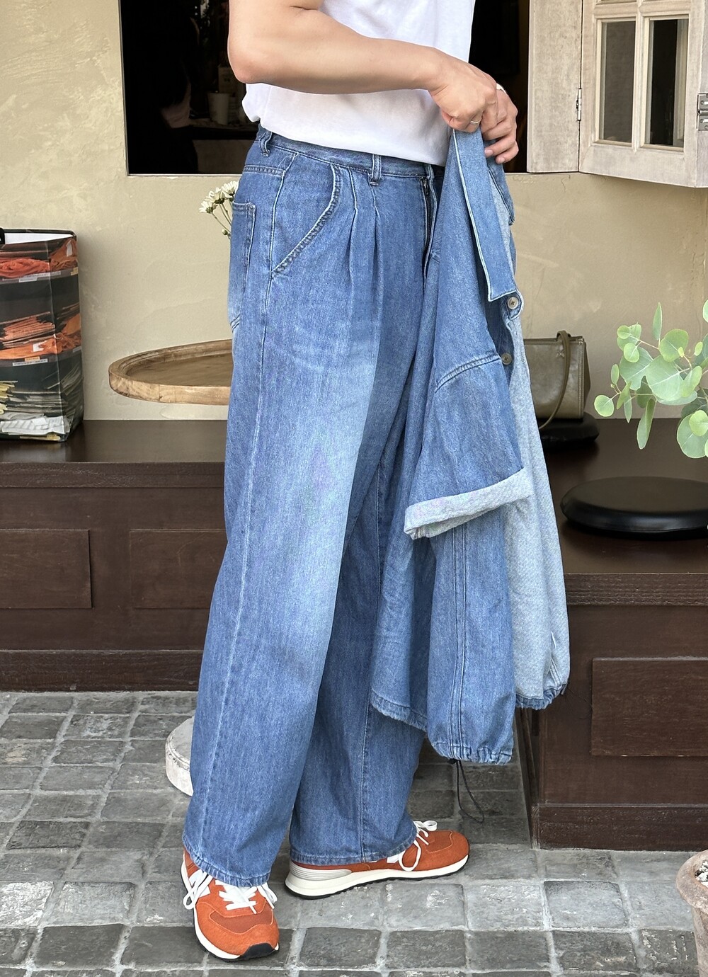 -가볍고 얇은 코튼 소재로 제작된 데님 팬츠