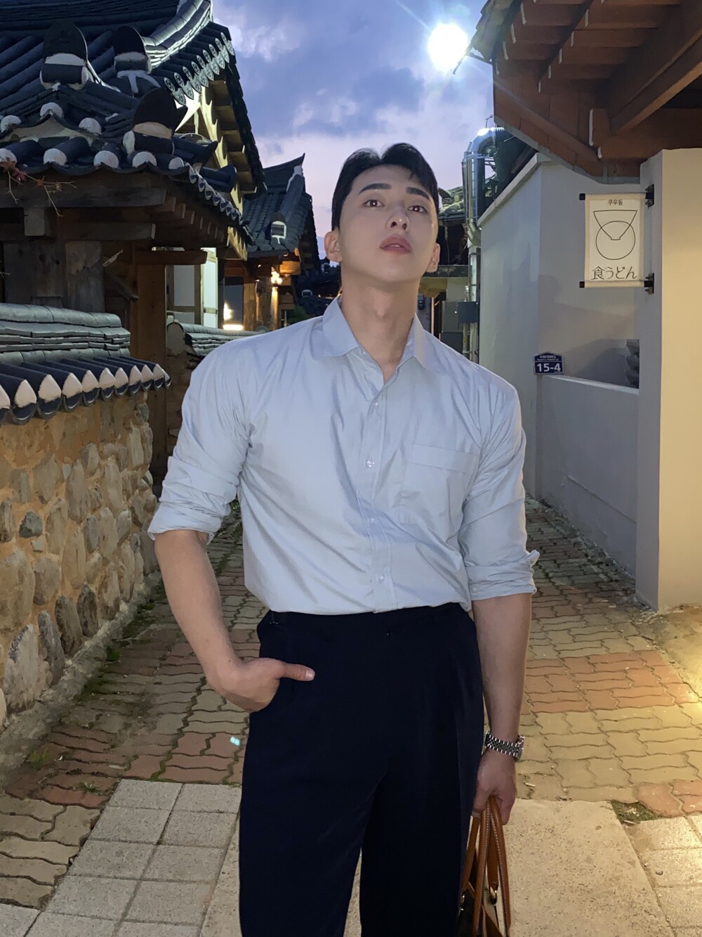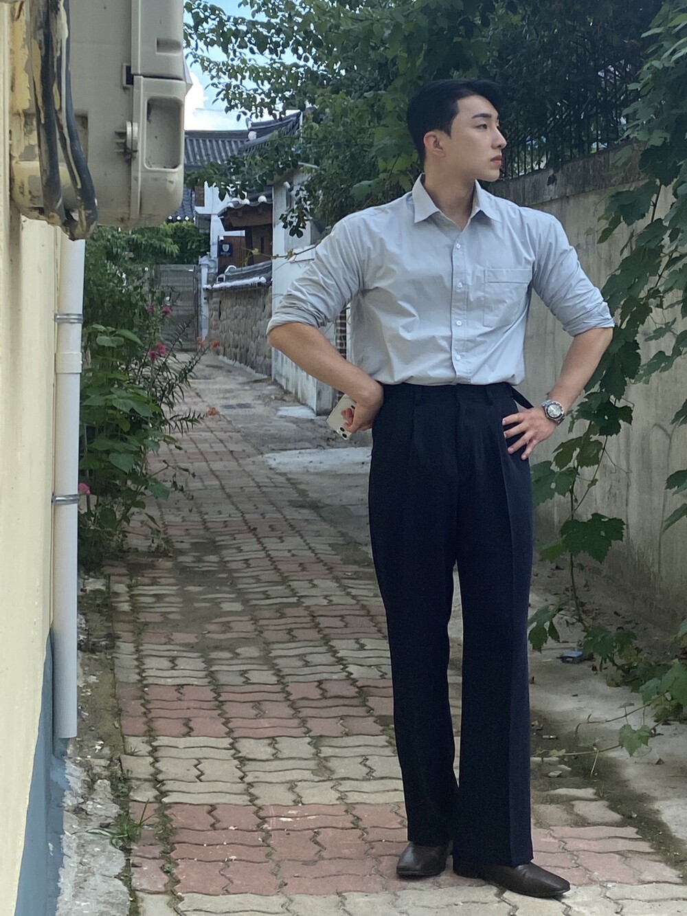 -일반 흐물 흐물한 재질이 아닌 탄탄하고 적당히 빳빳한 재질의 프리미엄 셔츠