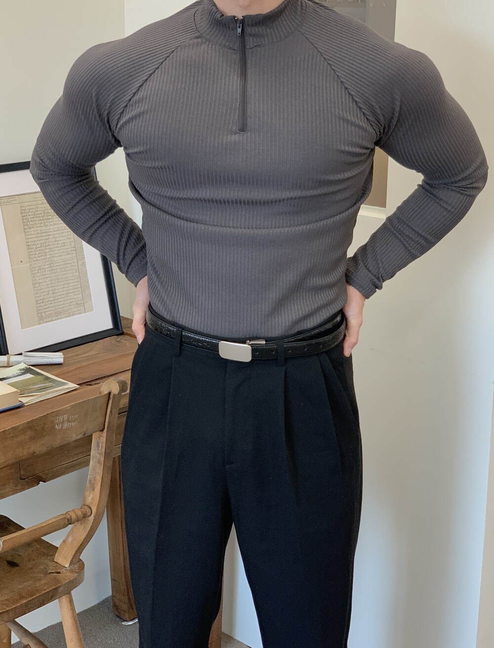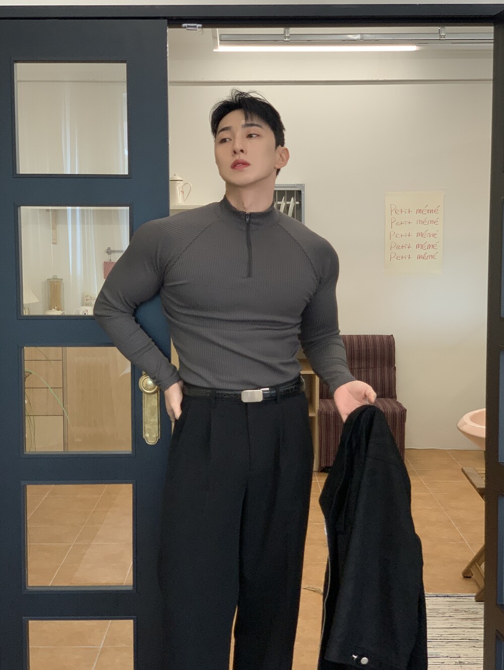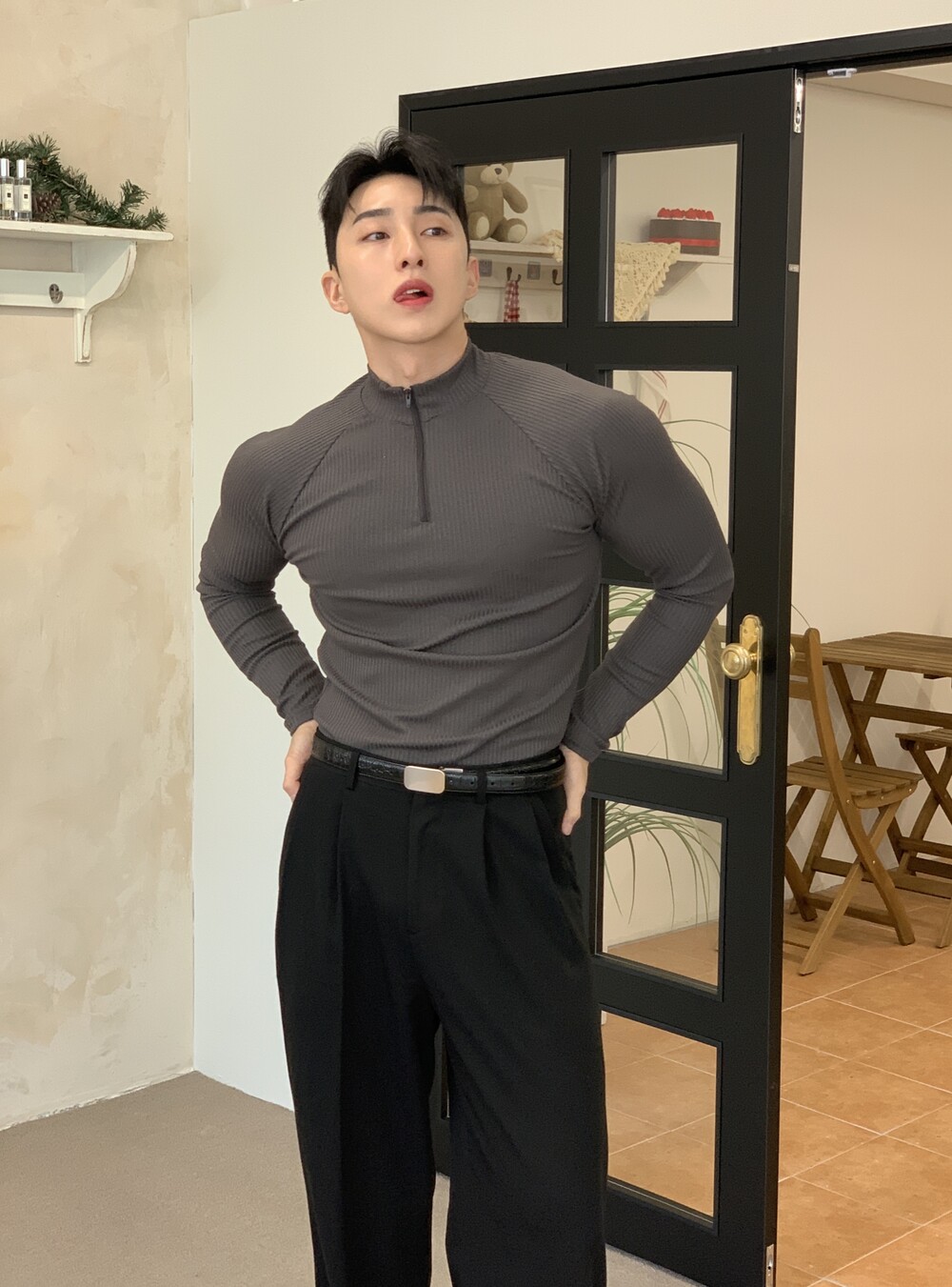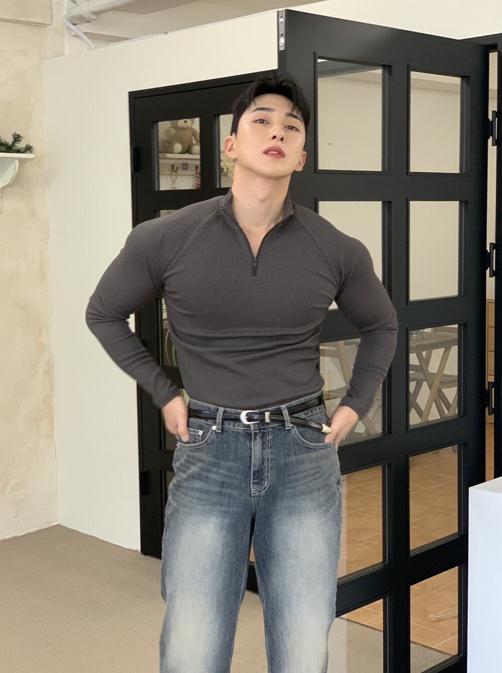 [봄 시즌 할인] 알마르 머슬핏 반집업 골지 니트 (4 Color)