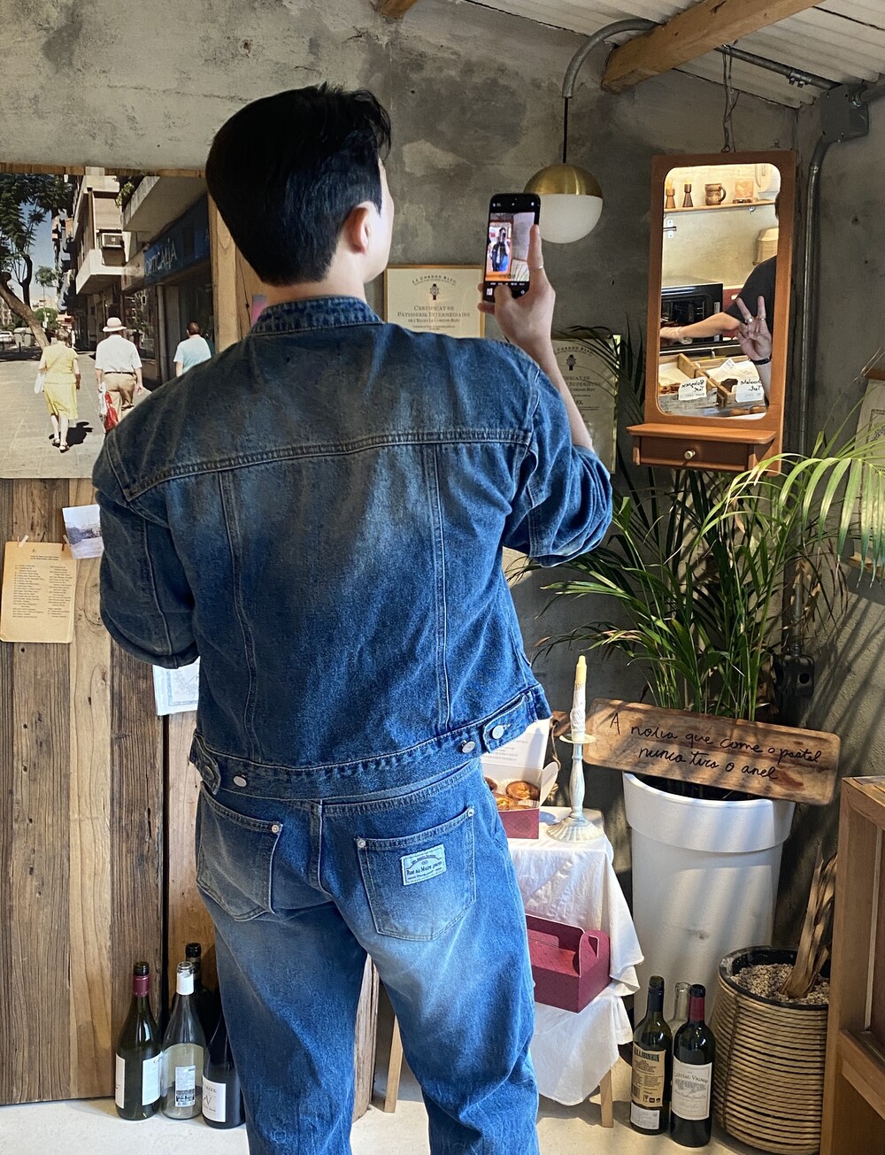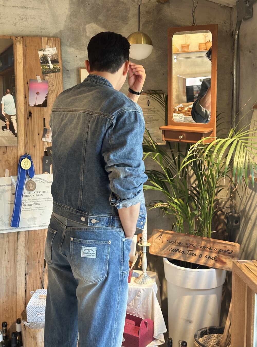 -셋업 팬츠와 통일감을 맞춘 패치워크로 더 멋스러움을 완성