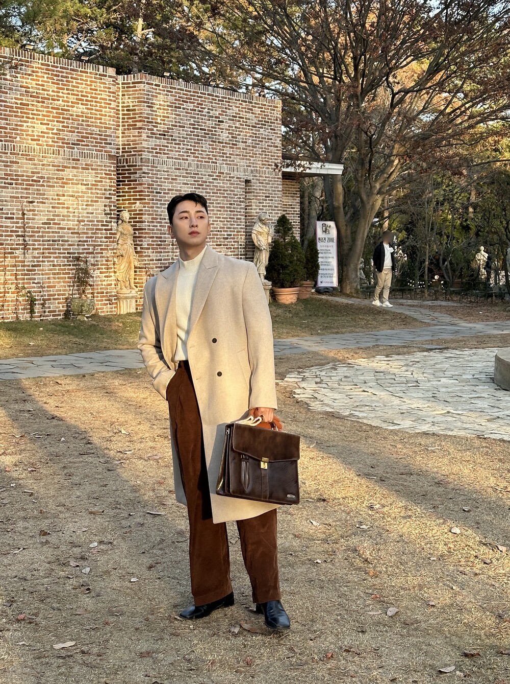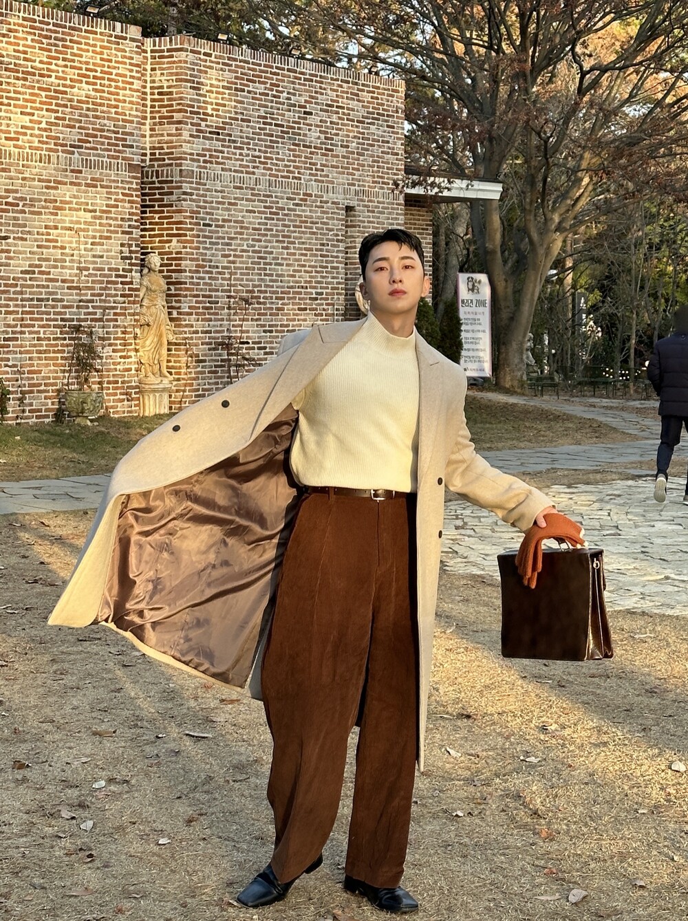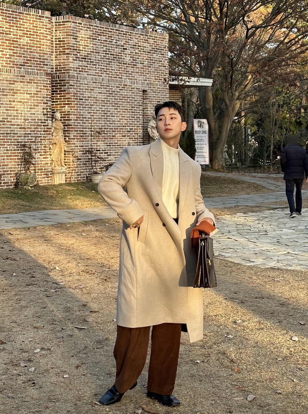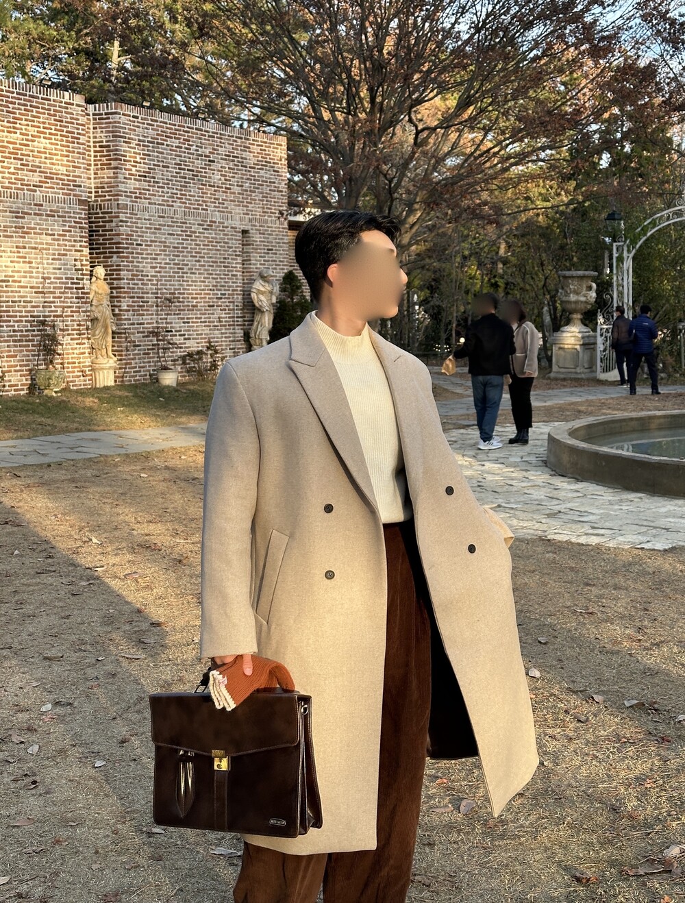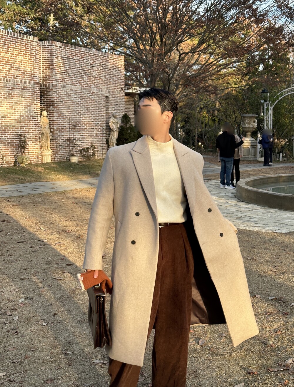 적당히 알맞은 기장으로 키 작은 사람, 키 큰 사람 모두가 이쁘게 입을 수 있는 코트입니다.